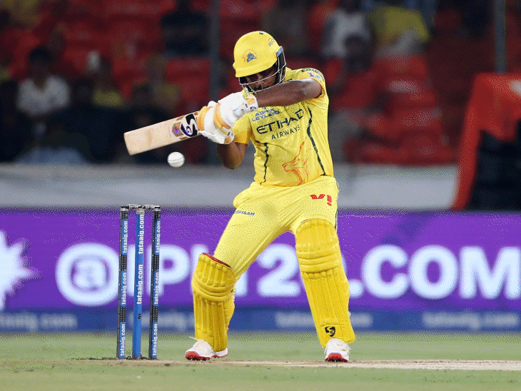 વિકેટકીપર સંજુ સેમસને પહેલી જ બોલ પર છગ્ગો ફટકારીને ચેન્નઈનું ખાતું ખોલ્યું. તેણે પ્રફુલ્લ હિંગેની શોર્ટ પિચ બોલને સ્ક્વેર લેગની દિશામાં બાઉન્ડ્રીની બહાર મોકલી દીધો. જોકે, સેમસન ઇનિંગ્સની બીજી જ ઓવરમાં 7 રન બનાવીને કેચ આઉટ થઈ ગયો, તેને નીતિશ રેડ્ડીએ પેવેલિયન ભેગો કર્યો. ક્લાસને મ્હાત્રેનો કેચ છોડ્યો