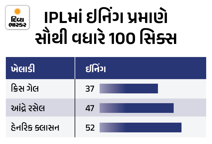 4. ક્લાસેન IPLમાં 100 સિક્સર ફટકારનાર ત્રીજા સૌથી ઝડપી બેટ્સમેન