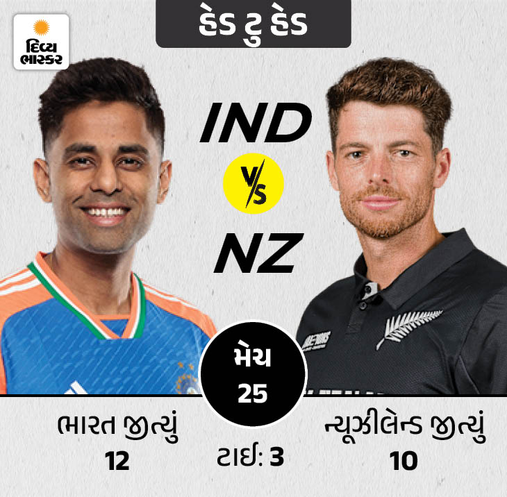 ભારતીય ટીમ હેડ-ટુ-હેડ રેકોર્ડમાં ન્યૂઝીલેન્ડ કરતા આગળ છે. ટીમે 48% મેચ જીતી છે, જ્યારે 40% મેચ ગુમાવી છે. બંને ટીમ વચ્ચે અત્યાર સુધી 25 T20 ઈન્ટરનેશનલ મેચ રમાઈ છે. જેમાંથી 12 મેચ ભારતીય ટીમના પક્ષમાં રહી છે, જ્યારે 10% મેચ કિવીઝે જીતી છે. 3 મેચ ટાઈ રહી છે. હોમ વેન્યૂઝ પર ભારતીય ટીમની જીતની ટકાવારી વધારે છે. ટીમે ઘરઆંગણેના મેદાન પર 63% મેચ જીતી છે. ટીમે 11 માંથી 7 મેચમાં જીત નોંધાવી છે, જ્યારે 4માં તેને હાર વેઠવી પડી છે.