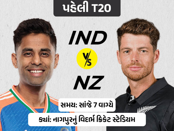 ઈન્ડિયન ક્રિકેટ ટીમ બુધવારે આ વર્ષની પહેલી T20 મેચ રમશે. નાગપુરના વિદર્ભ ક્રિકેટ મેદાન પર સૂર્યકુમાર યાદવની કેપ્ટનશીપ હેઠળની ટીમ ઈન્ડિયાનો સામનો ન્યૂઝીલેન્ડ સામે થશે. આ મેચ સાંજે 7 વાગ્યાથી રમાશે.