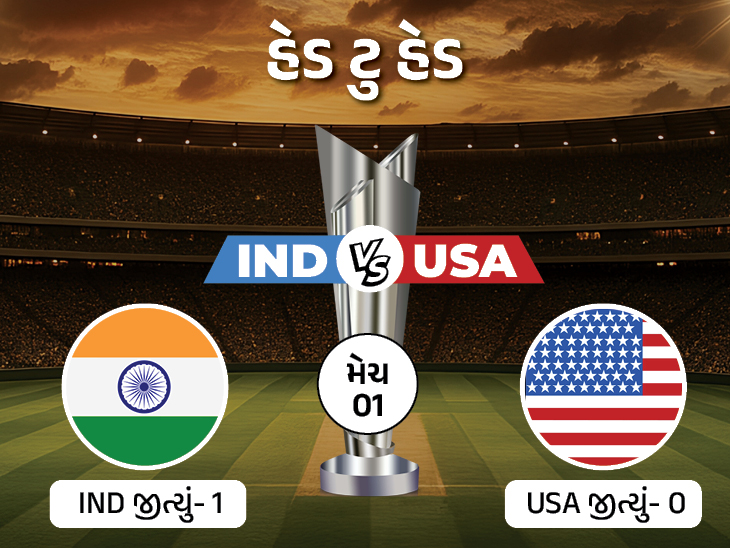 USA સામે ભારતીય ટીમનો વિજય રેકોર્ડ 100% છે. જોકે, બંને ટીમ વચ્ચે અત્યાર સુધી એક જ T20 મેચ રમાઈ છે. જે ગત T20 વર્લ્ડ કપમાં રમાઈ હતી. તે મેચ ભારત 7 વિકેટે જીત્યું હતું.