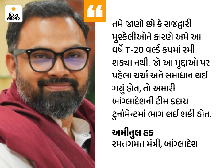 બાંગ્લાદેશના નવા રમતગમત મંત્રી અમીનુલ હક BCCI અને ભારત સાથે સંબંધો સુધારવા માગે છે. તેમણે કહ્યું કે તેઓ આ મુદ્દાને જલ્દી ઉકેલવા માગે છે. તેમણે બાંગ્લાદેશના વર્તમાન T20 વર્લ્ડ કપમાં ભાગ ન લેવાનો ઉલ્લેખ કર્યો.