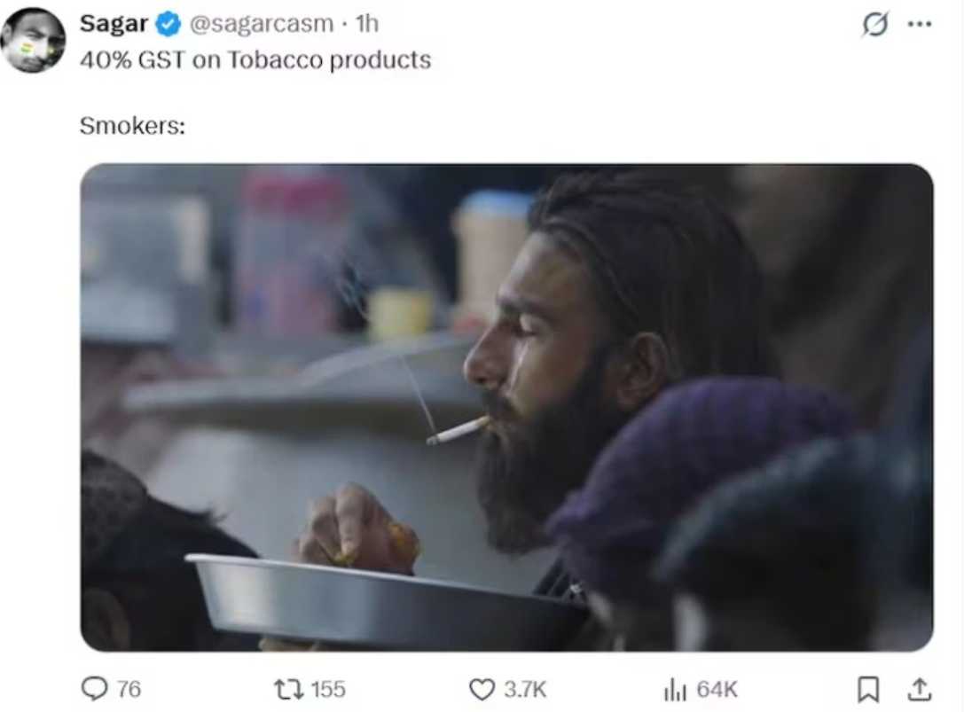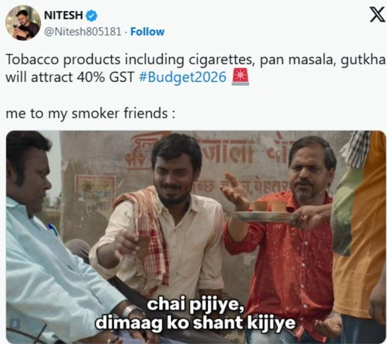 આ બધાની વચ્ચે મીમ્સનું પૂર છવાયેલું રહ્યું. કોઈએ સિગારેટ પીનારાઓનું રોવા-ધોવાનું બતાવ્યું, કોઈએ બીડી વાળાના ‘બચી જવા’ પર મજાક ઉડાવી. ઘણા મીમ્સ એવા પણ હતા જે બજેટના નિર્ણયને લઈને સરકારને સવાલ પૂછતા જોવા મળ્યા.