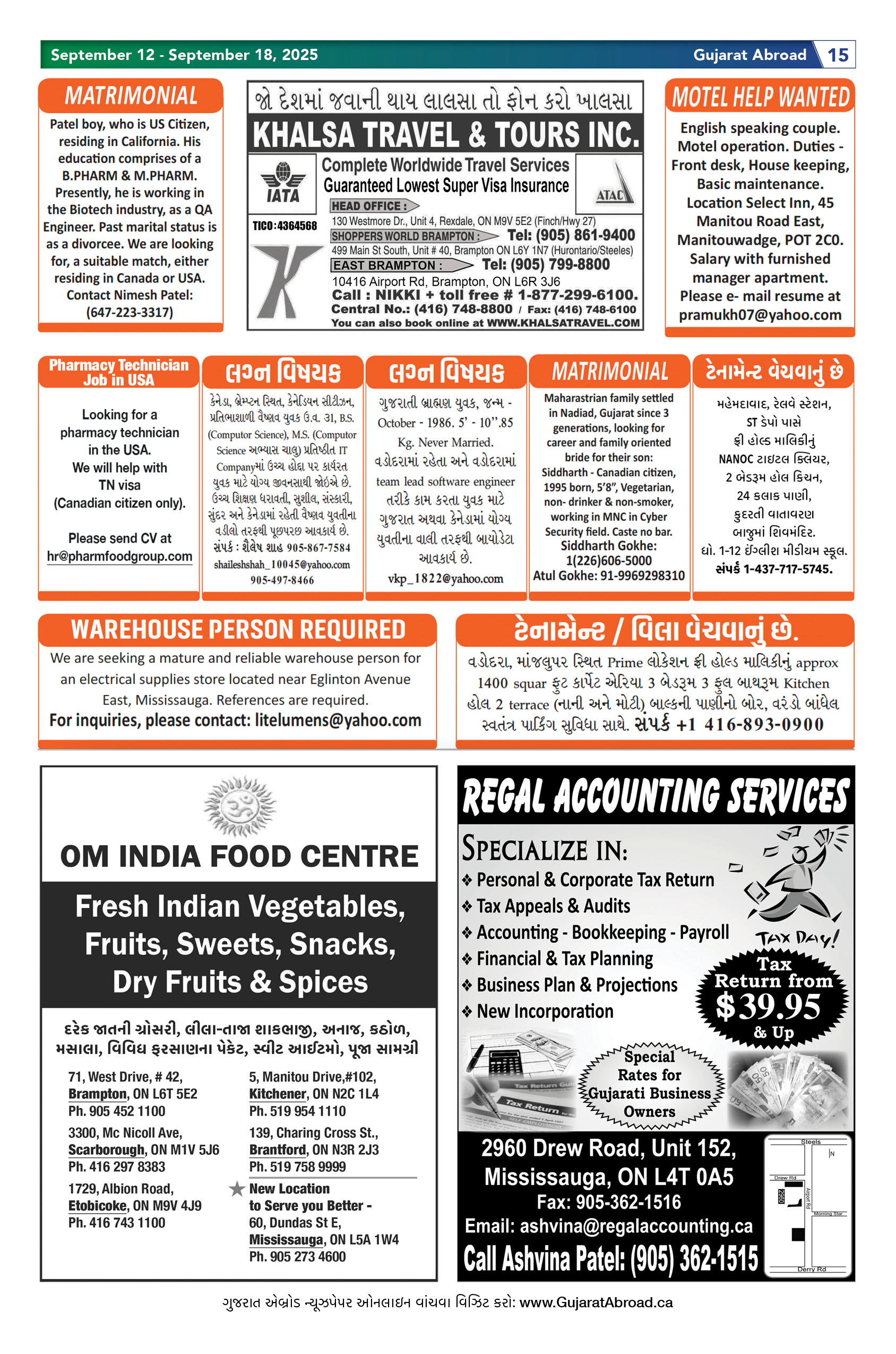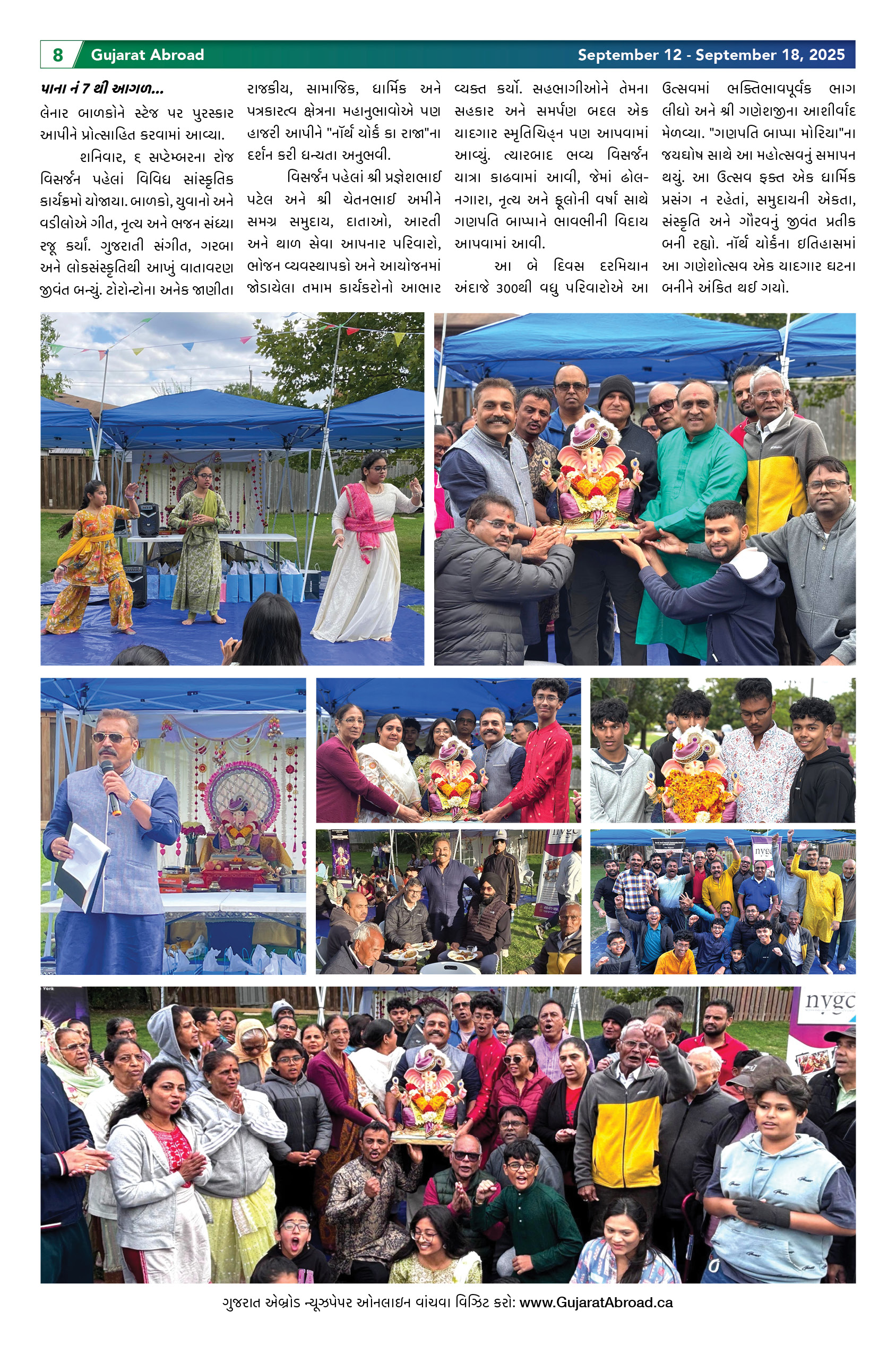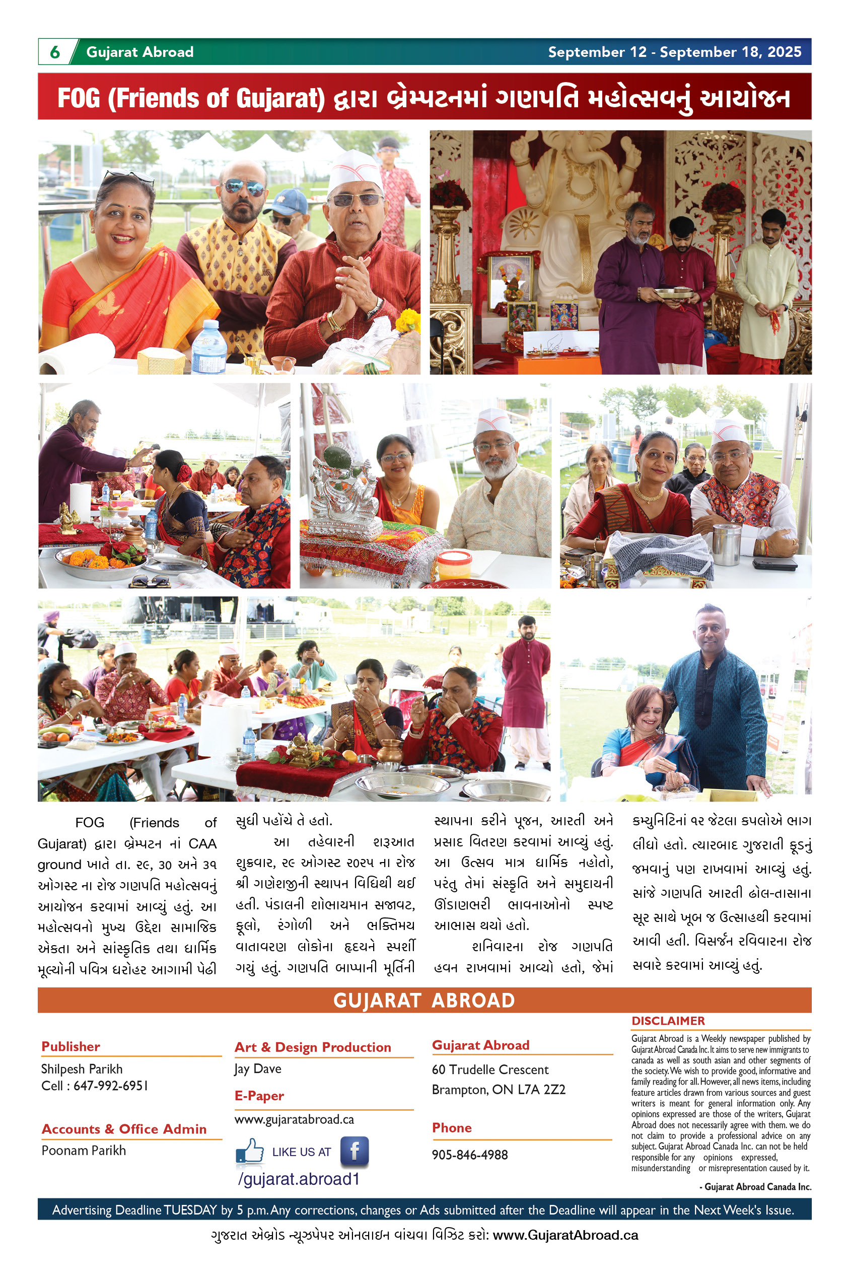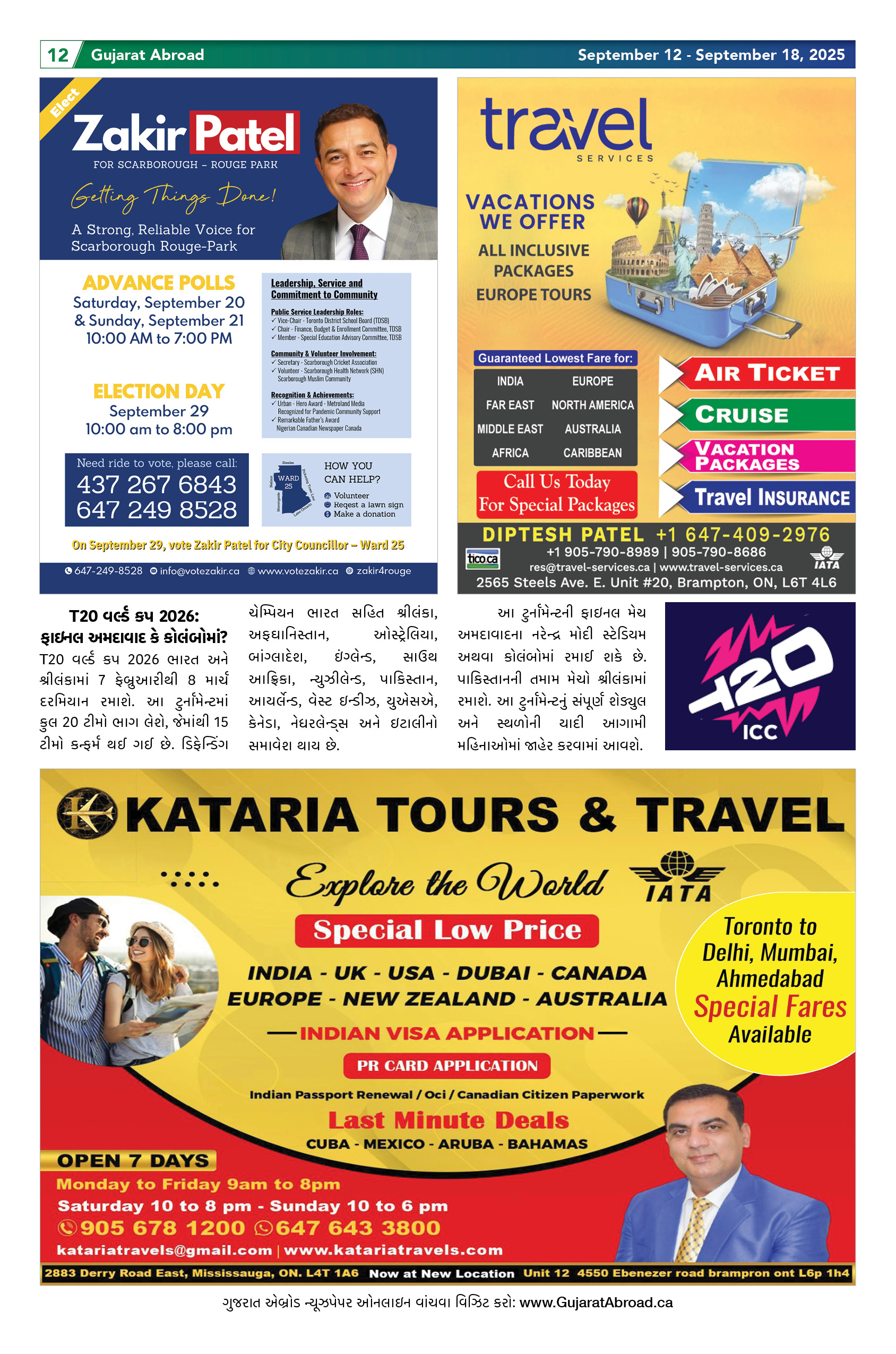 Gujarat Abroad is the largest circulated Gujarati Weekly Newspaper in the Greater Toronto & Surrounding Areas. Published from Brampton every Friday, Gujarat Abroad has a weekly print run of 15,000 copies, distributed free of cost through over 350 outlets throughout Toronto, Mississauga, Brampton, Markham & Oakville.