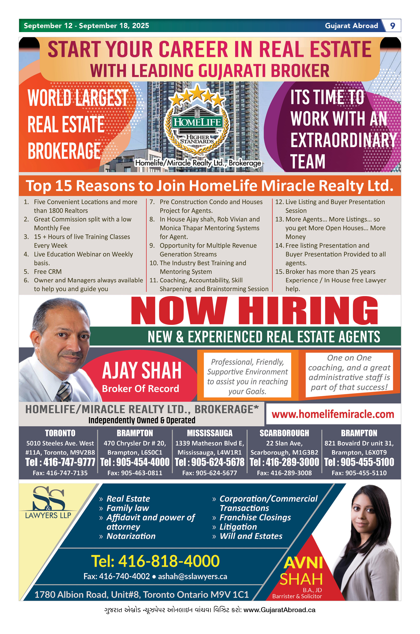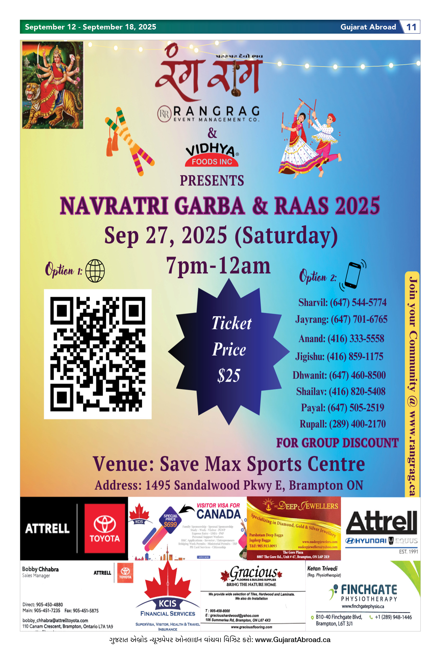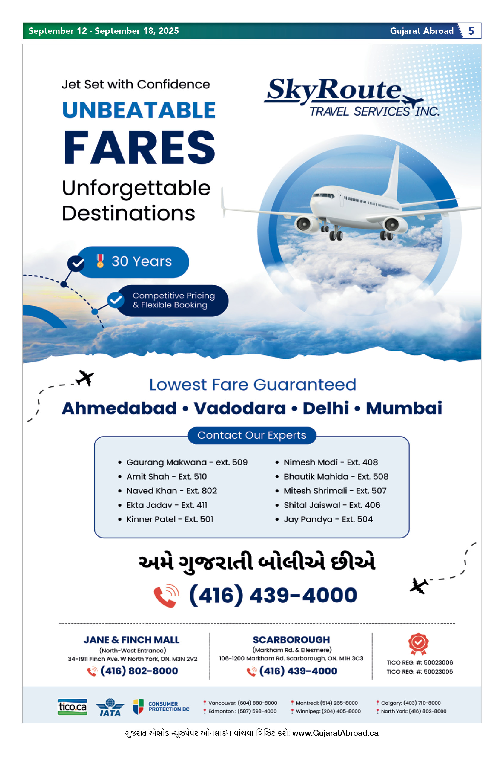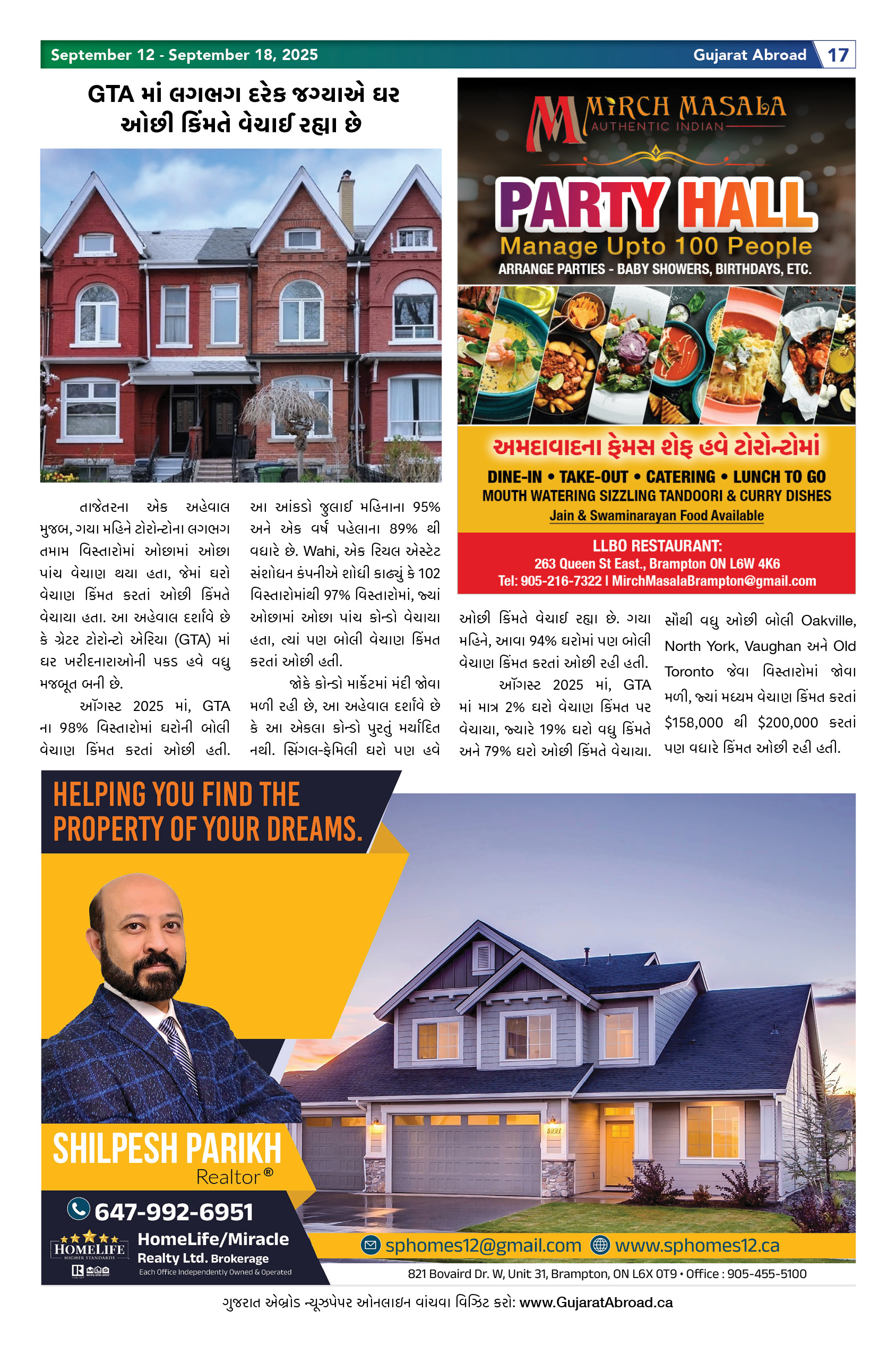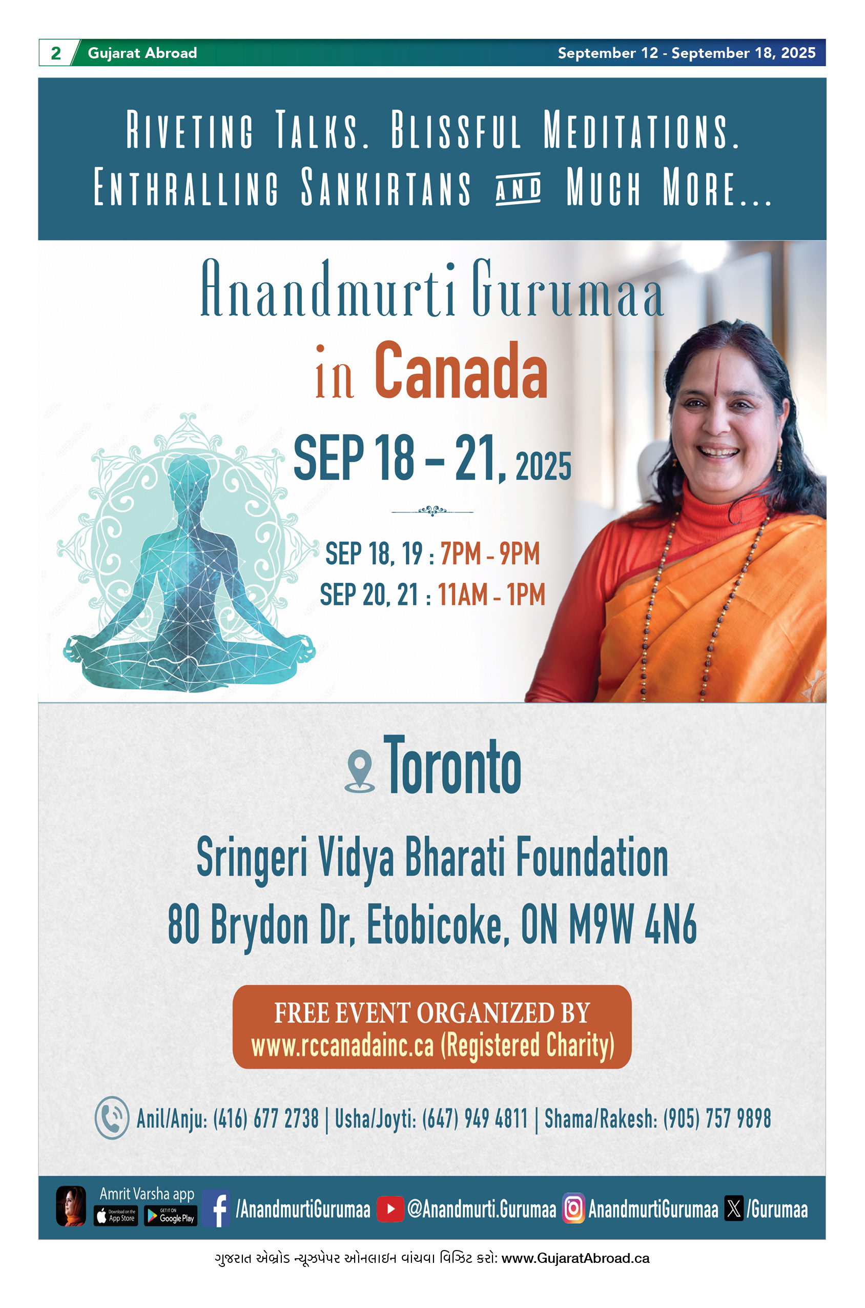 Gujarat Abroad is the largest circulated Gujarati Weekly Newspaper in the Greater Toronto & Surrounding Areas. Published from Brampton every Friday, Gujarat Abroad has a weekly print run of 15,000 copies, distributed free of cost through over 350 outlets throughout Toronto, Mississauga, Brampton, Markham & Oakville.