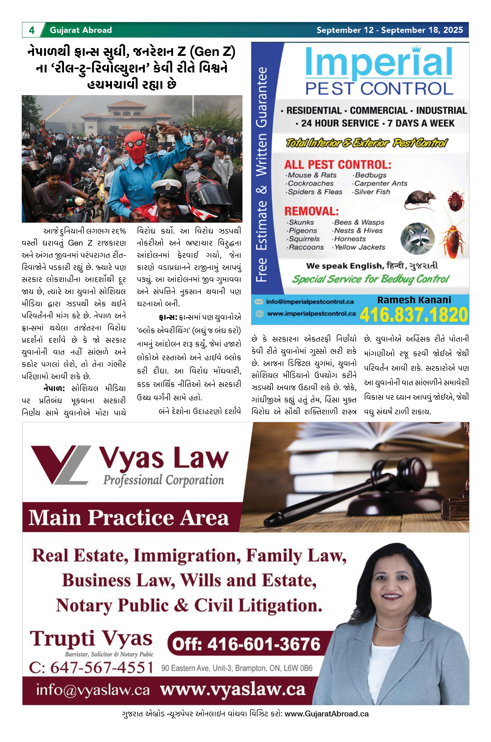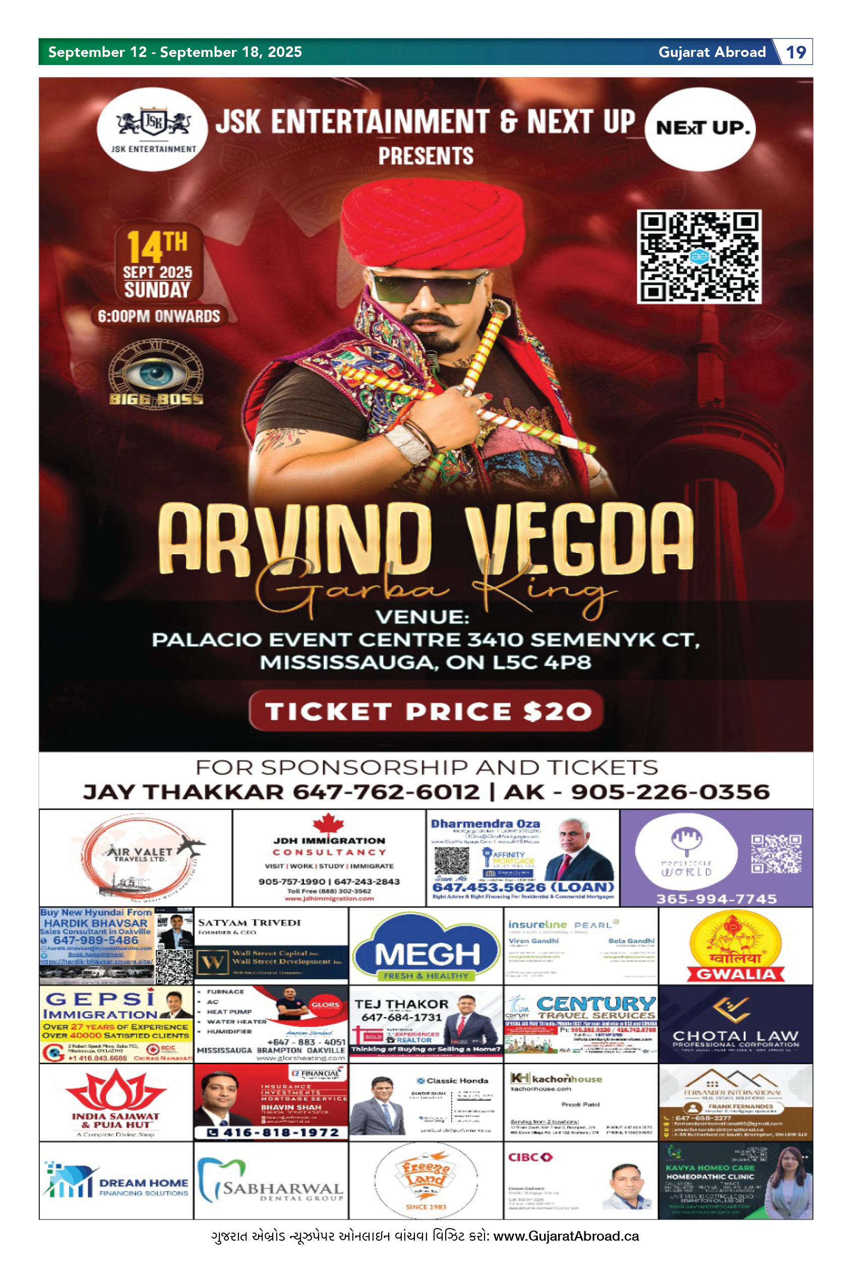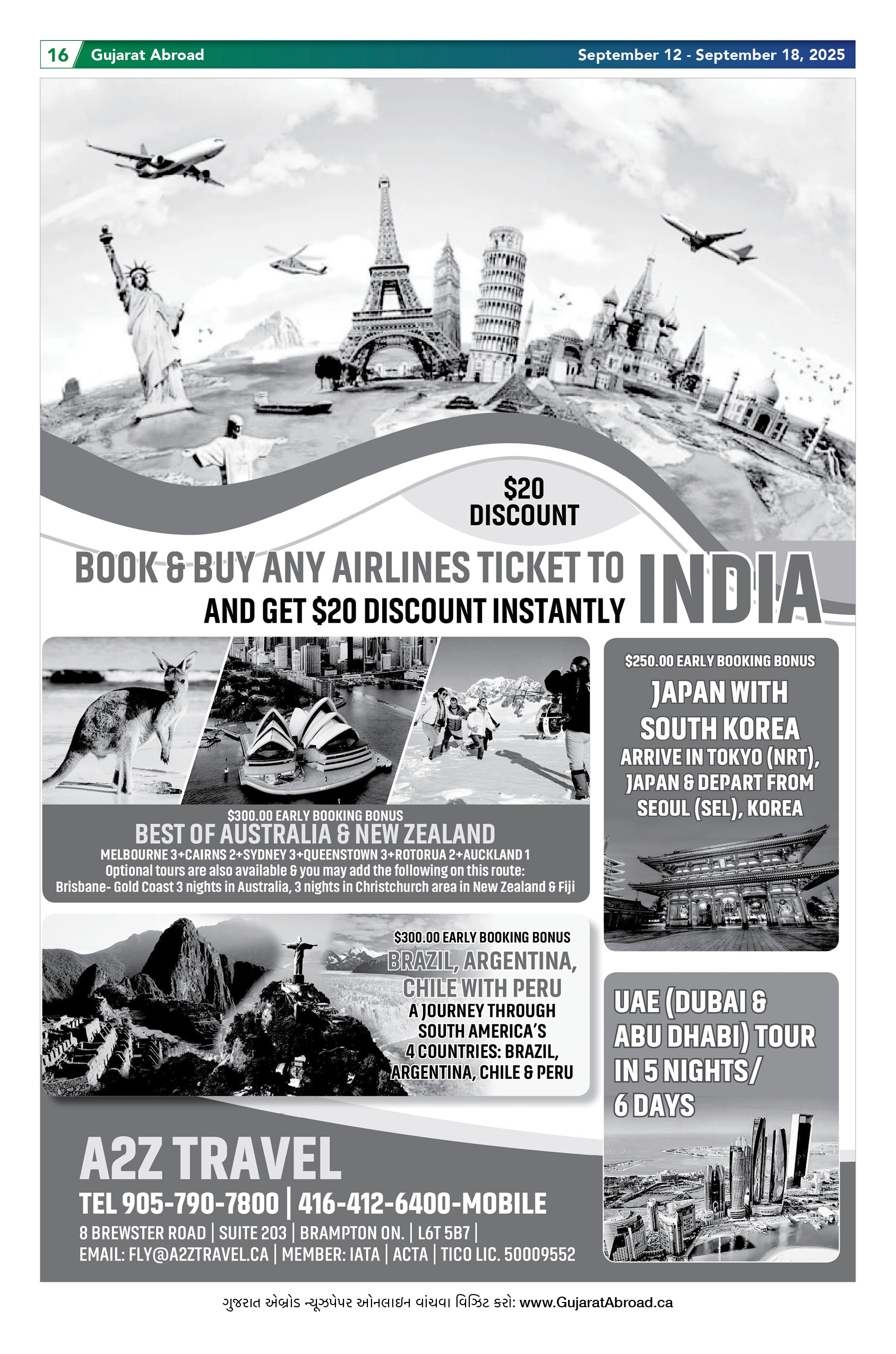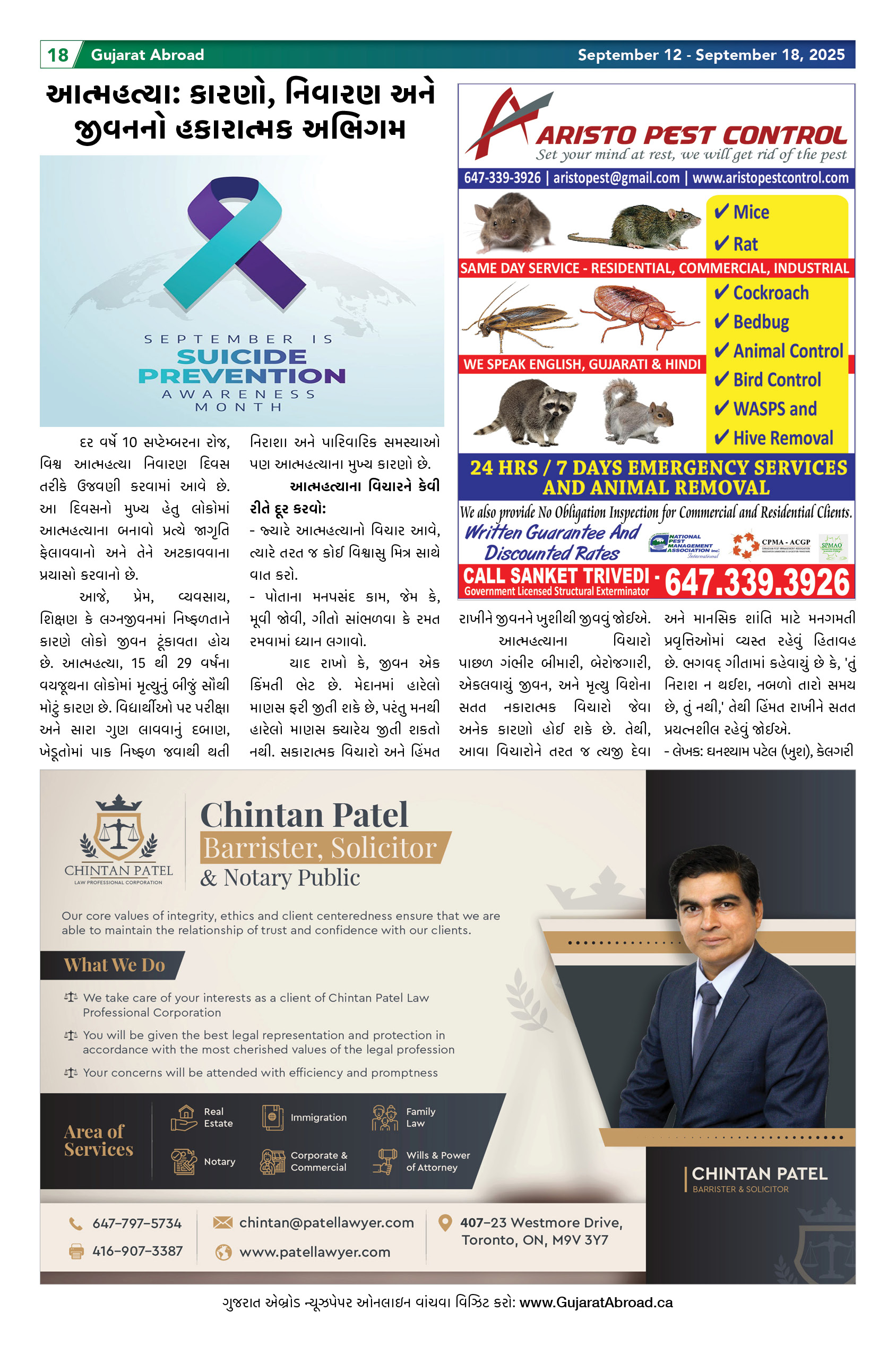 Gujarat Abroad is the largest circulated Gujarati Weekly Newspaper in the Greater Toronto & Surrounding Areas. Published from Brampton every Friday, Gujarat Abroad has a weekly print run of 15,000 copies, distributed free of cost through over 350 outlets throughout Toronto, Mississauga, Brampton, Markham & Oakville.