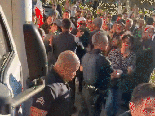 લોસ એન્જલસ ટાઈમ્સ અનુસાર, સ્થાનિક પોલીસે ટ્રક-ડ્રાઈવરની અટકાયત કરી છે. પોલીસે હજુ સુધી ડ્રાઈવરની ઓળખ જાહેર કરી નથી. આ ઘટનાનો એક વીડિયો સોશિયલ મીડિયા પ્લેટફોર્મ X પર વાઇરલ થઈ રહ્યો છે, જેમાં ટ્રકની સાઈડ પર અરબી ભાષા અને અંગ્રેજીમાં એક સાઈન દેખાય છે, જેમાં લખેલું છે, “NO SHAH. NO REGIME. USA: DON’T REPEAT 1953. NO MULLAH.”