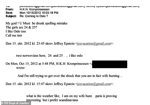એક મેલમાં એપસ્ટીને મેટે-મેરિટને જણાવ્યું કે તે લગ્ન કરવા માંગે છે અને પત્નીની શોધમાં પેરિસ આવ્યા છે. તેમણે કહ્યું કે પેરિસ અફેર કે ગેરકાયદેસર સંબંધો બાંધવા માટે સારું છે, પરંતુ જો પત્ની શોધવી હોય તો સ્કેન્ડિનેવિયન (નોર્વે, સ્વીડન અને ડેનમાર્ક) મહિલાઓ વધુ સારી અને વફાદાર પત્નીઓ હોય છે.