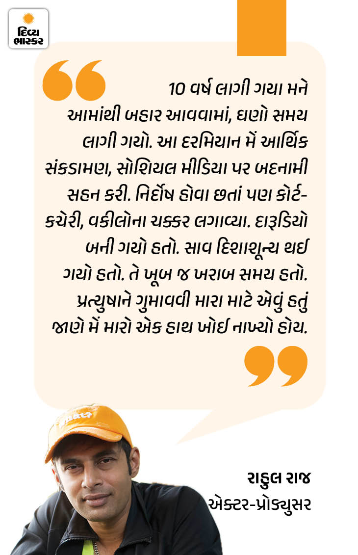 દિવ્ય ભાસ્કર સાથેની વાતચીતમાં રાહુલ રાજે કહ્યું, ‘મારા પર લાગેલા બધા આરોપો ખોટા છે, નહીંતર મને એન્ટિસિપેટરી જામીન ન મળત. ભલે મને હાલમાં ક્લીનચીટ નથી મળી, પણ એટલું ચોક્કસ જાણું છું કે, હું આ કેસ જરૂર જીતીશ. જુઓ, તે સમયે પોતાનો સ્વાર્થ સાધવા માટે ઘણા લોકોએ મીડિયા સામે મારા વિરુદ્ધ ઘણું બધું બકવાસ બોલ્યું અને તેનાથી પોલીસ પર દબાણ આવ્યું.’