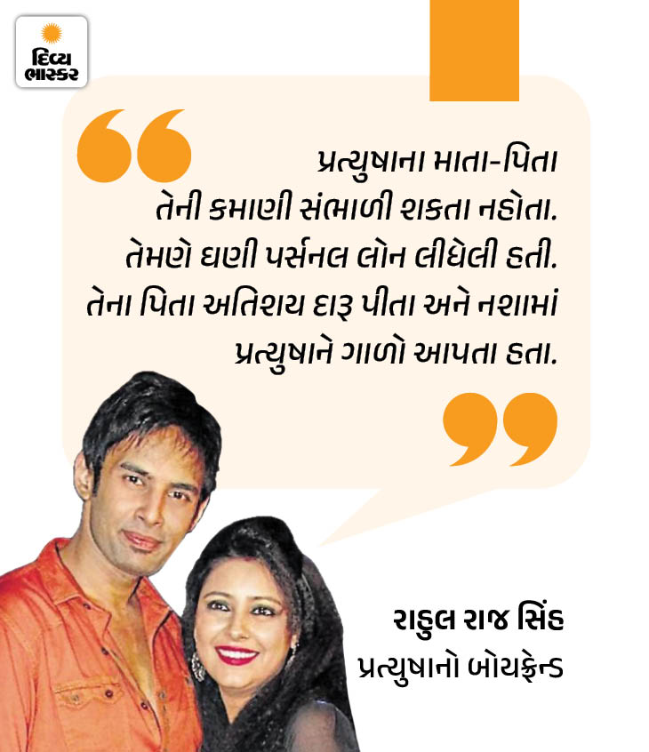 રાહુલ રાજે પણ પોલીસ સ્ટેટમેન્ટમાં કહ્યું કે, પ્રત્યુષા 24 વર્ષની હતી. આમ છતાં તેનું માતા-પિતા સાથે જોઈન્ટ એકાઉન્ટ હતું. પ્રત્યુષાના માતા-પિતાએ તેના નામે લાખોની લોન લીધી હતી, જેના કારણે પ્રત્યુષા ઘણી પરેશાન રહેતી હતી. આ વાત પર તેનો અવારનવાર માતા-પિતા સાથે ઝઘડો થતો હતો.
