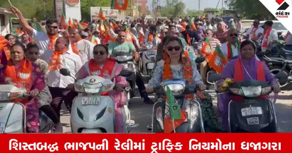 આજે પ્રચાર કરવાના છેલ્લા દિવસે રાજકોટમાં ભાજપની બાઈક રેલી નીકળી હતી. શહેરમાં વોર્ડ નંબર ત્રણમાં ભાજપના ઉમેદવારોએ રેલી કાઢીને પ્રચાર કર્યો હતો. ઈશ્વરિયા ગામથી પ્રચાર માટે રેલીનું આયોજન કરવામાં આવ્યું હતું. આ રેલી વિવિધ વિસ્તારોમાં ફરી હતી અને લોકસંપર્ક કરવામાં આવ્યો હતો. ચૂંટણીના પ્રચારમાં ભાજપના કાર્યકરો અને નેતાઓ ભાન ભૂલ્યા હતાં. રેલીમાં ટુવ્હીલર પર સવાર તમામ લોકો હેલમેટ વગર જોવા મળ્યા હતાં. ભાજપના કાર્યકરો અને નેતાઓએ ટ્રાફિક નિયમોના ધજાગરા ઉડાવ્યા હતાં.