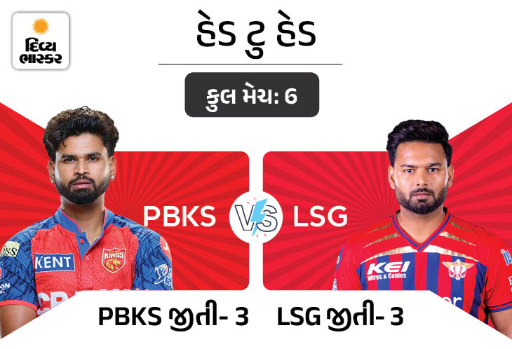 PBKS અને LSG વચ્ચે અત્યાર સુધી 6 મેચ રમાયા છે, જેમાં પંજાબ કિંગ્સ (PBKS) અને લખનઉ સુપર જાયન્ટ્સ (LSG)એ 3-3 મેચ જીતીને એકબીજાને જોરદાર ટક્કર આપી છે. ગઈ સીઝનમાં બંને ટીમ વચ્ચે 2 મેચ રમાઈ હતી અને બંને પંજાબે જીતી હતી. તો વળી, બંને ટીમ આ મેદાન પર પ્રથમ વખત આમને-સામને ટકરાશે.
