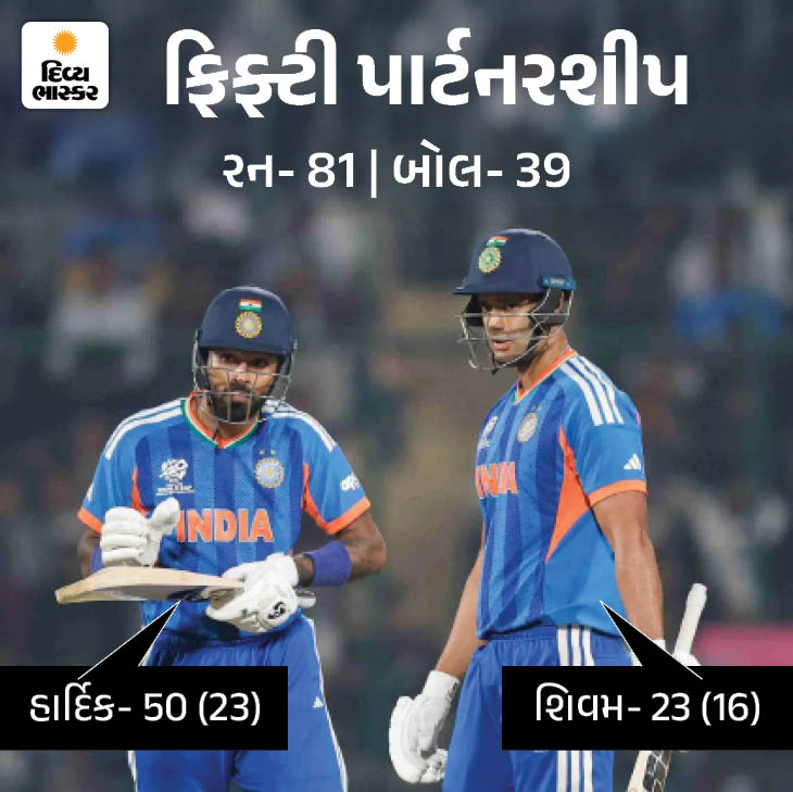પંડ્યા અને દુબે વચ્ચે ફિફ્ટી પાર્ટનરશિપ