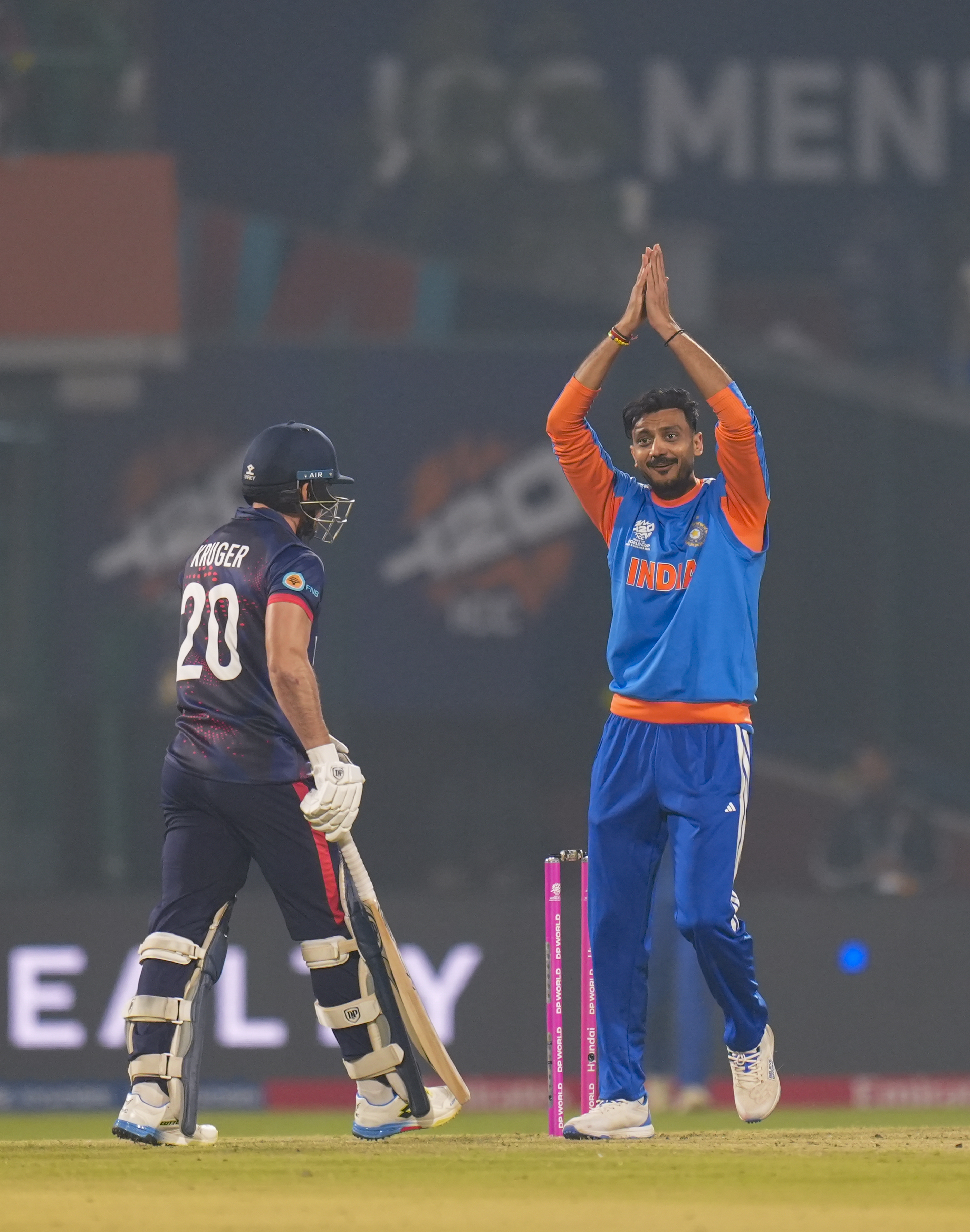 અક્ષર પટેલે નામિબિયાના બે બેટર્સને આઉટ કર્યા છે.