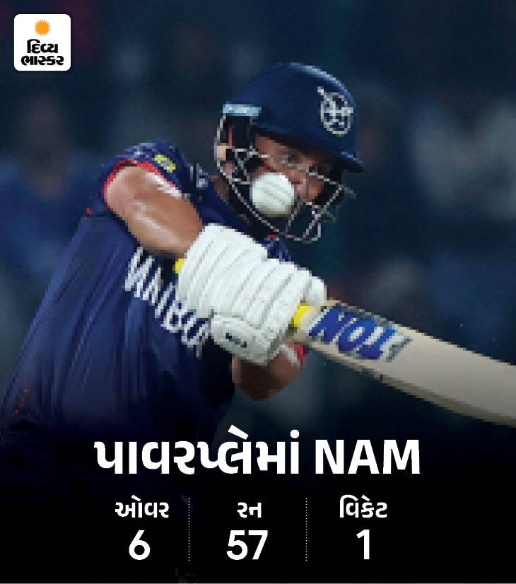 પાવરપ્લેની છેલ્લી ઓવરમાં અર્શદીપ સિંહે 17 રન આપ્યા. આ ઓવરની સાથે જ નામિબિયાએ પોતાના 50 રન પૂરા કર્યા અને પાવરપ્લેમાં કુલ 57 રન પણ બનાવી લીધા છે.