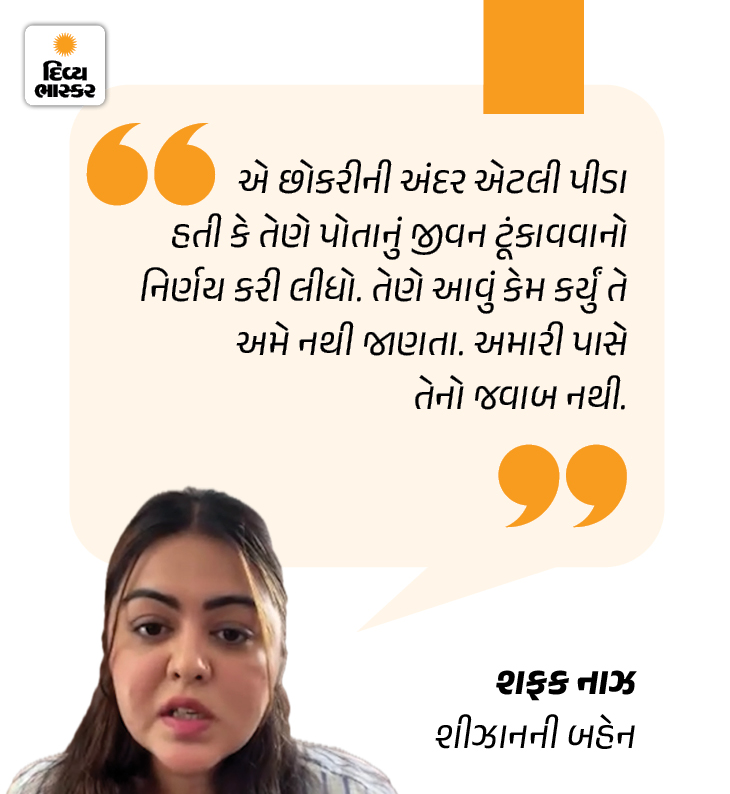 શીઝાનની બહેન શફક નાઝ કહે છે, ‘જે પણ પુરાવા છે, તે કોર્ટમાં રજૂ કરવામાં આવ્યા છે. જો જામીન મળ્યા છે, તો ચોક્કસ કોર્ટે બધું જોઈને નિર્ણય લીધો હશે. એક વાત ચોક્કસ કહીશ કે, કોઈ પણ વ્યક્તિ એક જ કારણસર આત્મહત્યા કરતો નથી. ઘણી બધી વાતો મળીને કોઈને તે નિર્ણય સુધી લઈ જાય છે. અસલી ટ્રિગર શું હતું, આ પ્રશ્ન કદાચ તુનિષા સાથે જ જતો રહ્યો.’