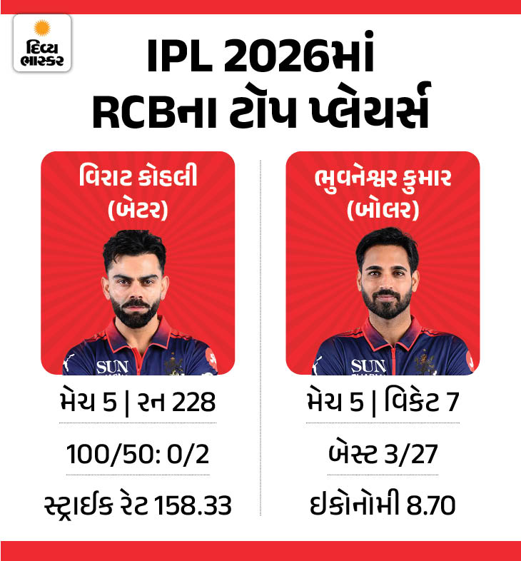 આ સીઝનમાં પણ સૌની નજર વિરાટ કોહલી પર ટકેલી છે અને તેણે પોતાના ફેન્સને નિરાશ કર્યા નથી. કોહલી અત્યારે ‘ઓરેન્જ કેપ’ હોલ્ડર છે. જોકે, આ વખતે ખાસ વાત એ છે કે RCBની બેટિંગ માત્ર કોહલી પર નિર્ભર નથી. કેપ્ટન રજત પાટીદાર, દેવદત્ત પડિકલ, ફિલ સોલ્ટ અને ટિમ ડેવિડે શાનદાર ઇનિંગ્સ રમીને ટીમની જીતમાં મહત્વની ભૂમિકા ભજવી છે. કોહલી હવે વધુ ખુલીને રમી શકે છે કારણ કે તેને ખબર છે કે મિડલ ઓર્ડરમાં રન બનાવનારા ખેલાડીઓ હાજર છે.