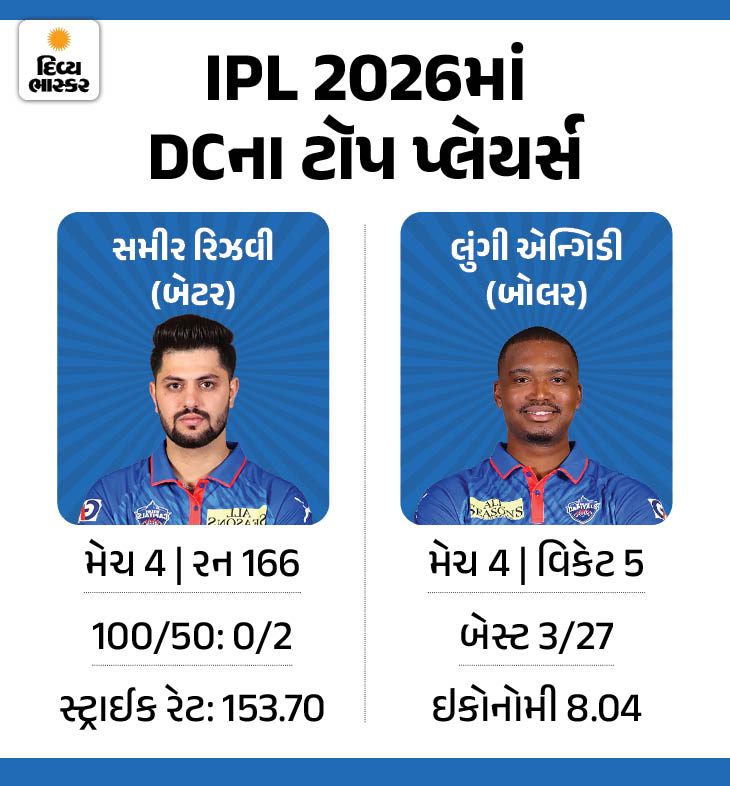 દિલ્હી માટે સૌથી મોટી ચિંતા તેમના કેપ્ટન અક્ષર પટેલ અને સ્ટાર સ્પિનર કુલદીપ યાદવનું ફોર્મ છે. અક્ષરે 4 મેચમાં માત્ર 3 વિકેટ લીધી છે અને બેટથી પણ તે ફ્લોપ રહ્યો છે. બીજી તરફ, કુલદીપ યાદવ ઘણો મોંઘો સાબિત થઈ રહ્યો છે અને 10ની ઇકોનોમીથી રન લૂંટાવી રહ્યો છે. ફાસ્ટ બોલિંગમાં મુકેશ કુમાર અને ટી. નટરાજન પણ ટુકડે-ટુકડે જ સારું પ્રદર્શન કરી શક્યા છે.
