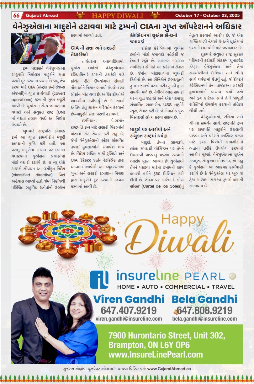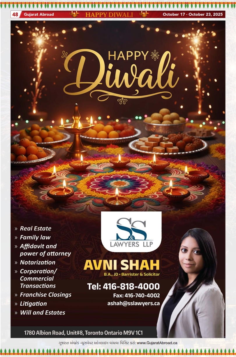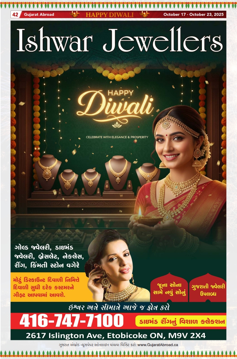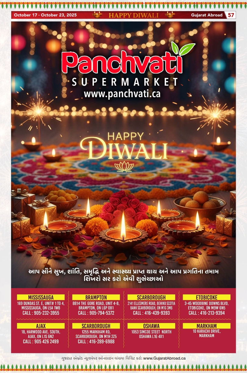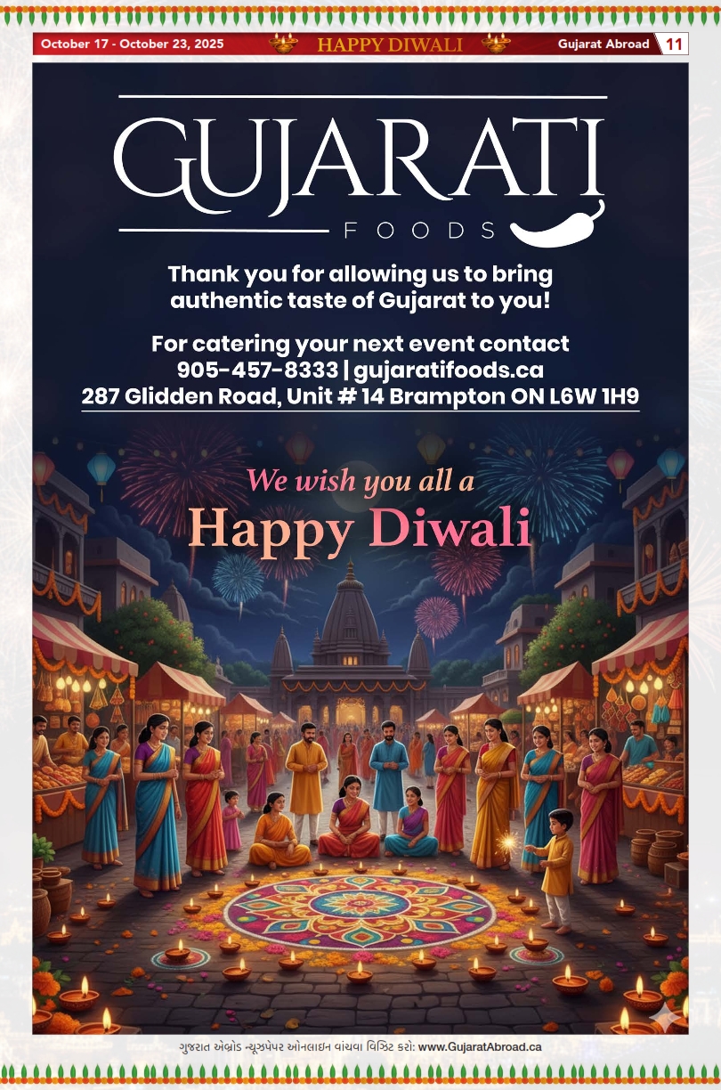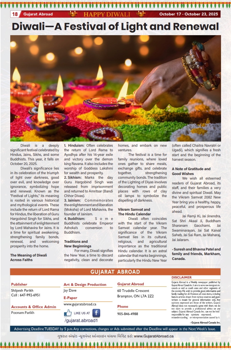Gujarat Abroad is the largest circulated Gujarati Weekly Newspaper in the Greater Toronto & Surrounding Areas. Published from Brampton every Friday, Gujarat Abroad has a weekly print run of 15,000 copies, distributed free of cost through over 350 outlets throughout Toronto, Mississauga, Brampton, Markham & Oakville.