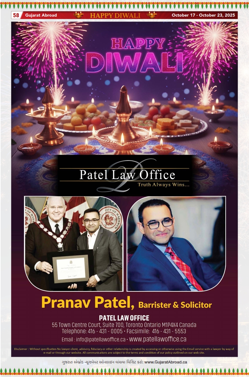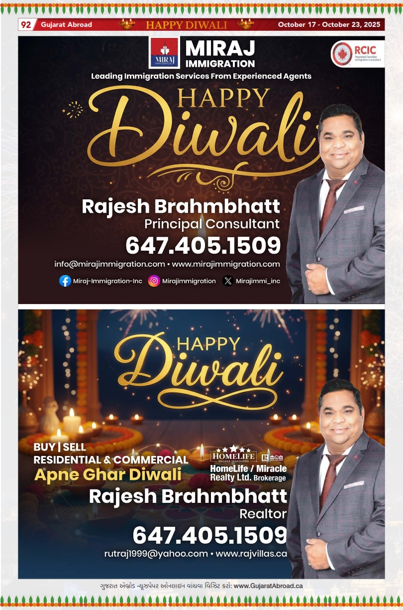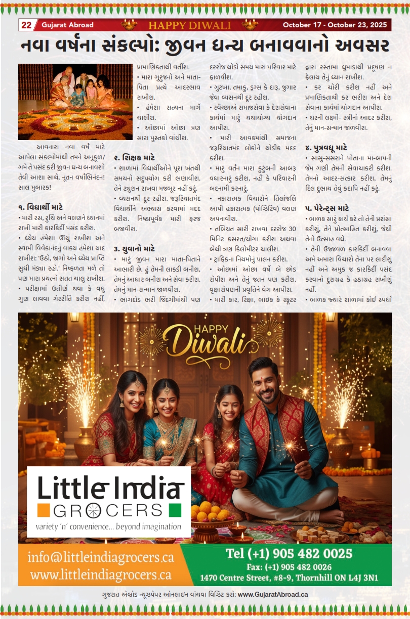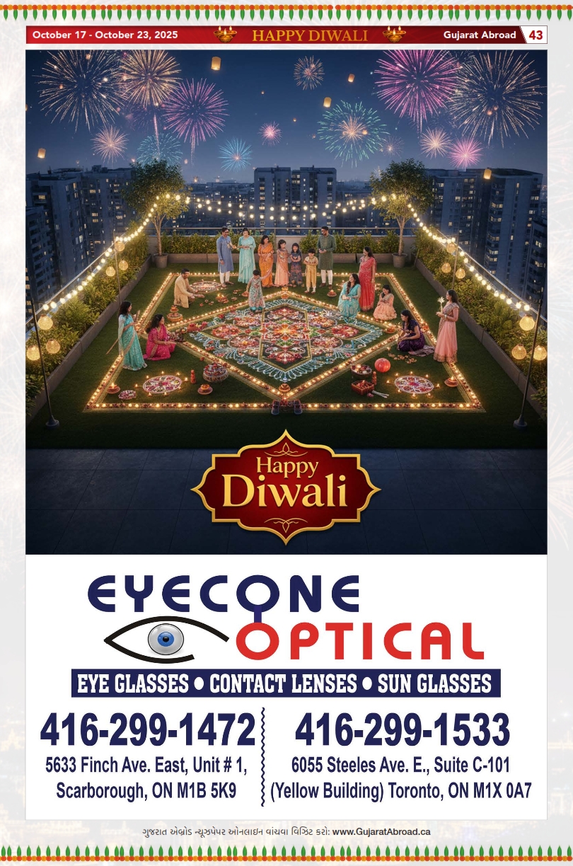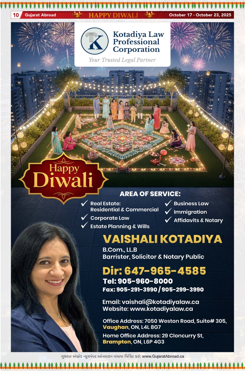 Gujarat Abroad is the largest circulated Gujarati Weekly Newspaper in the Greater Toronto & Surrounding Areas. Published from Brampton every Friday, Gujarat Abroad has a weekly print run of 15,000 copies, distributed free of cost through over 350 outlets throughout Toronto, Mississauga, Brampton, Markham & Oakville.