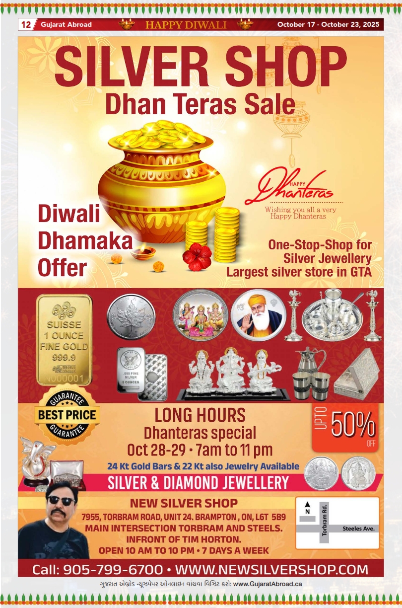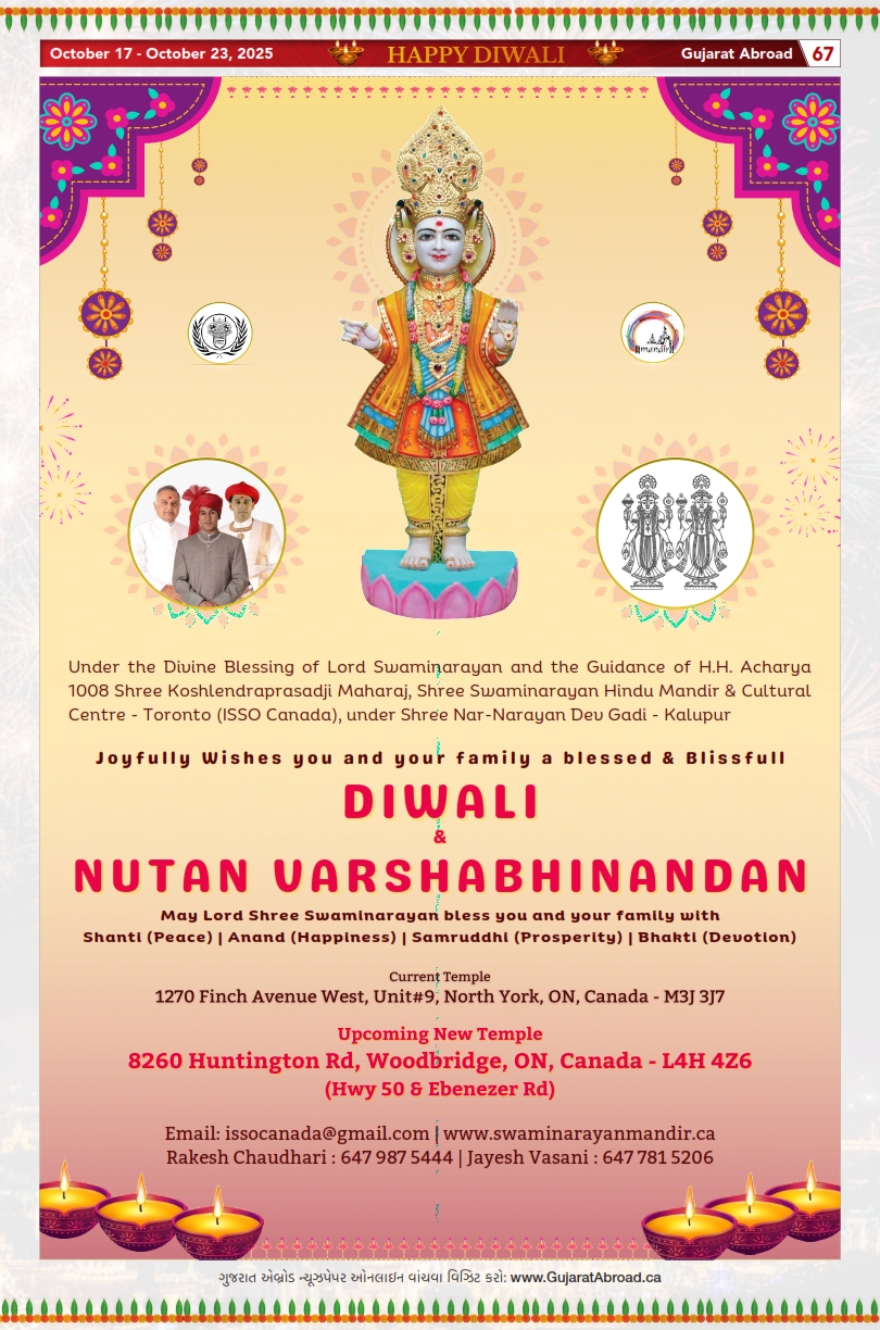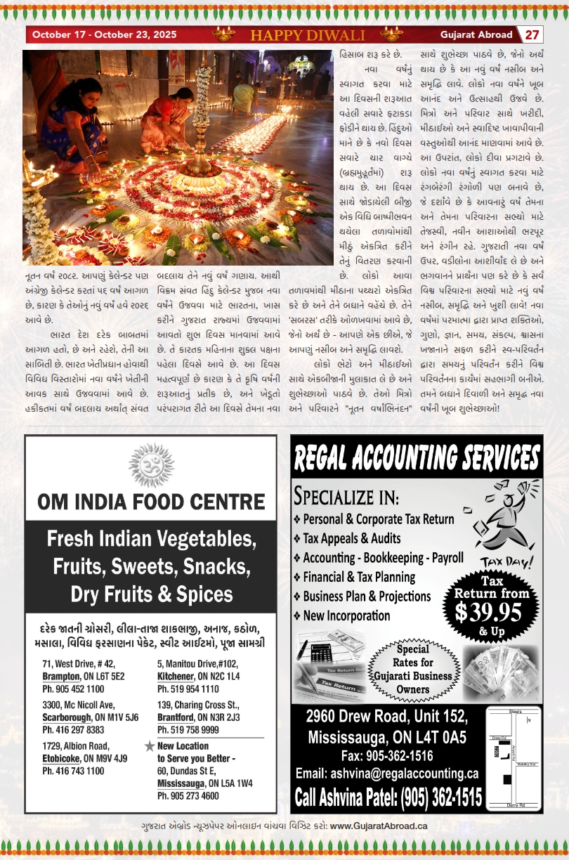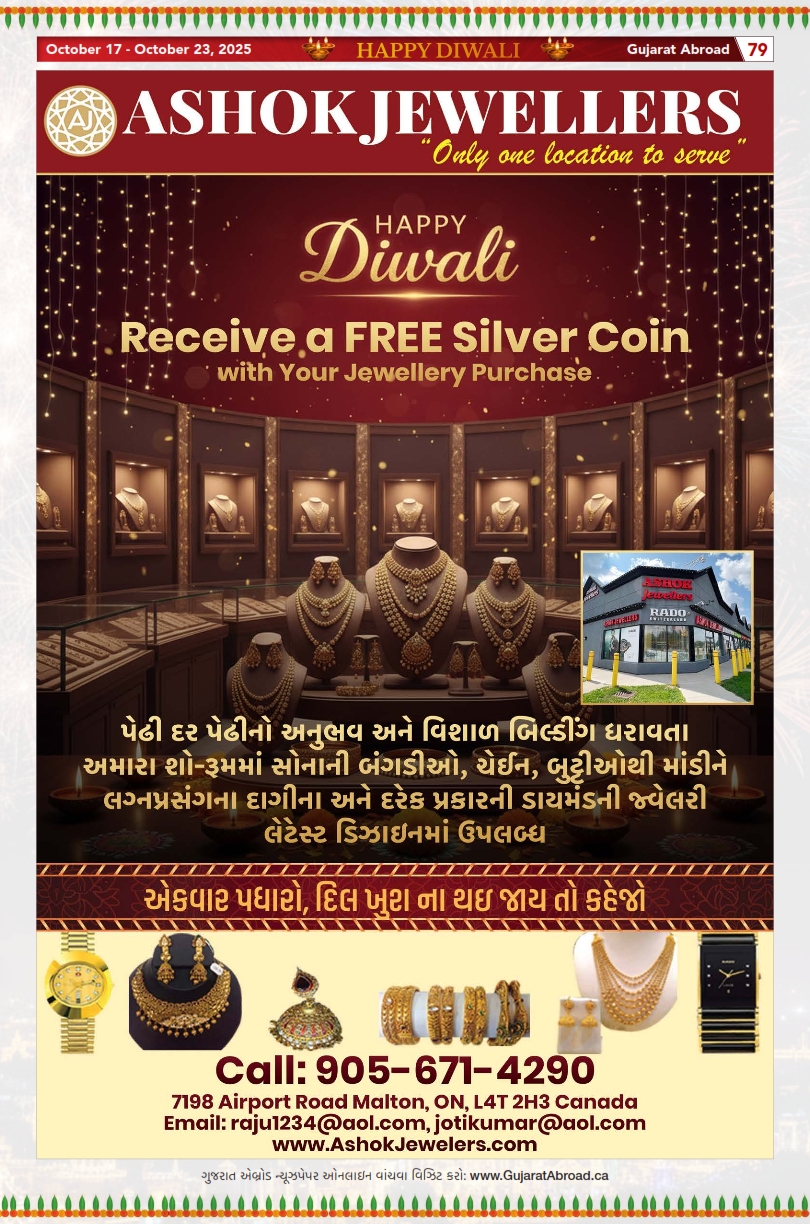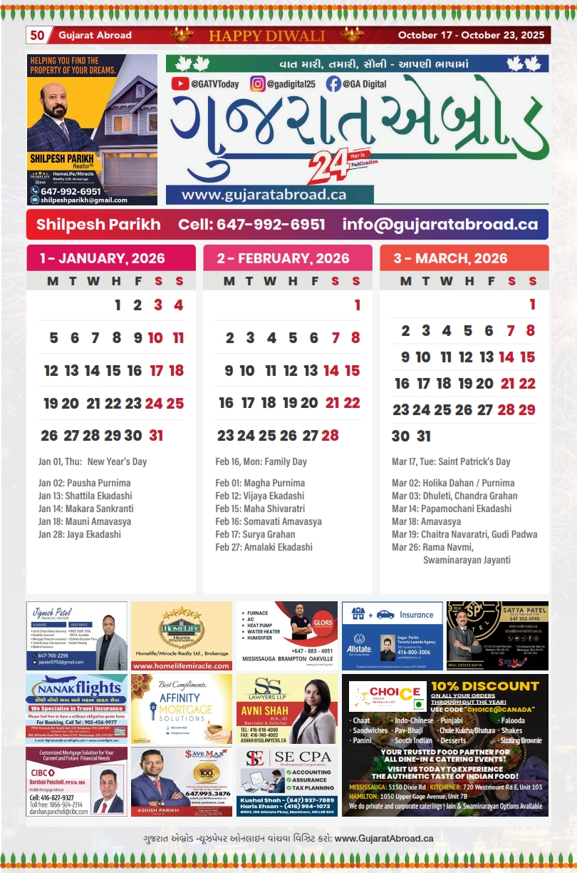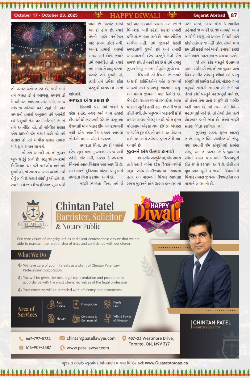 Gujarat Abroad is the largest circulated Gujarati Weekly Newspaper in the Greater Toronto & Surrounding Areas. Published from Brampton every Friday, Gujarat Abroad has a weekly print run of 15,000 copies, distributed free of cost through over 350 outlets throughout Toronto, Mississauga, Brampton, Markham & Oakville.