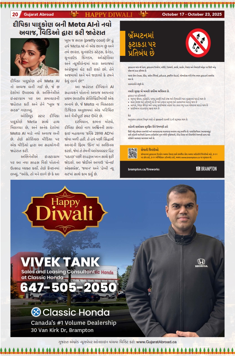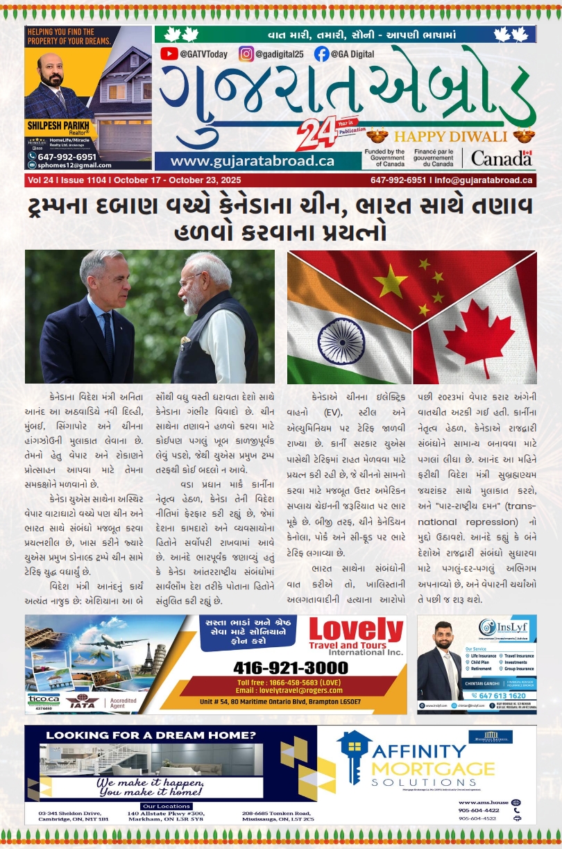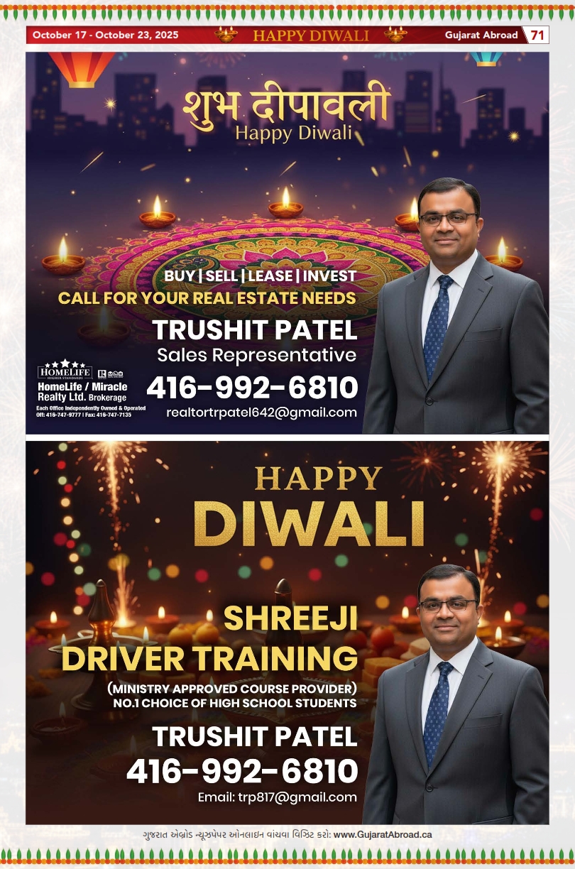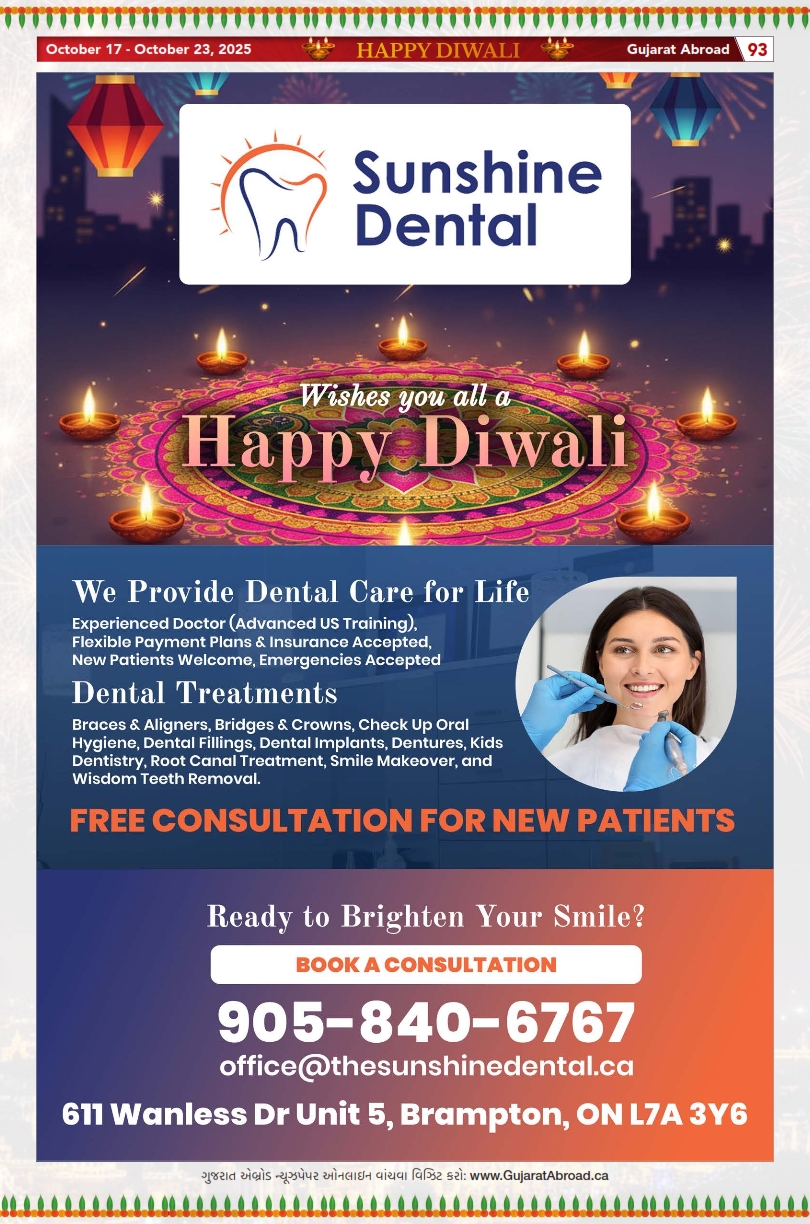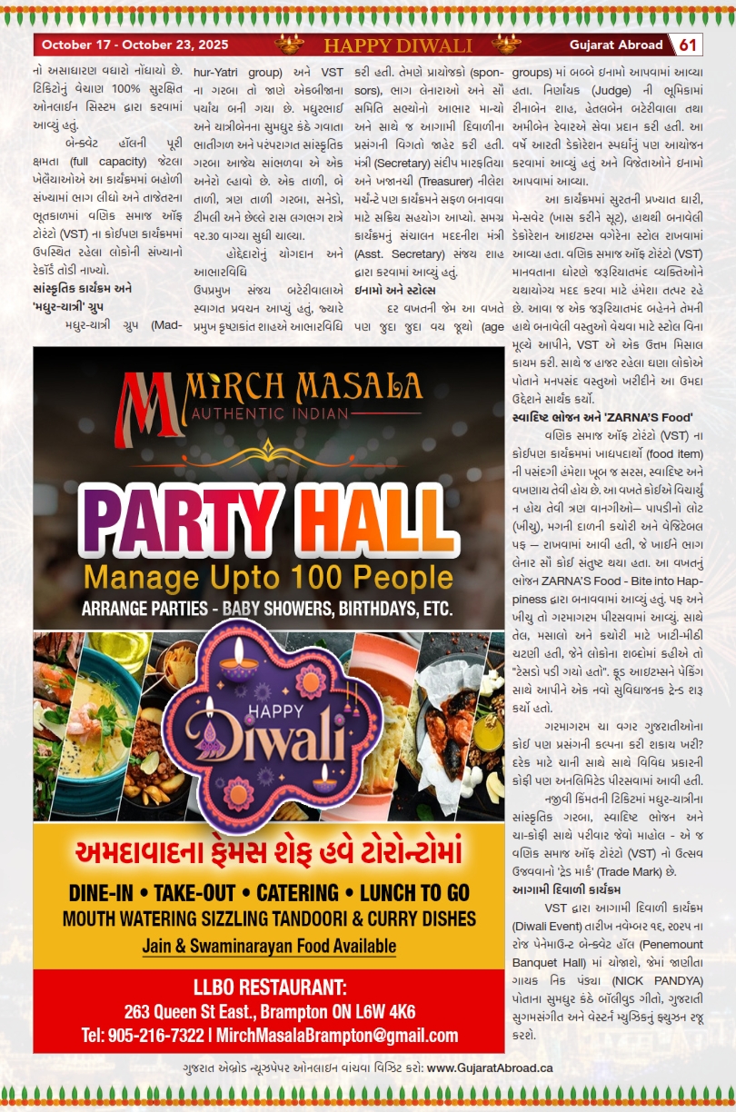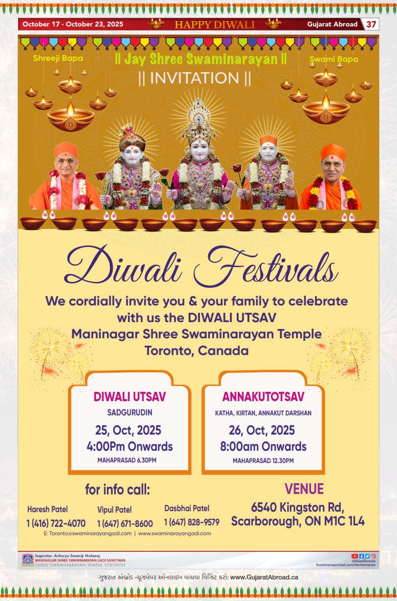 Gujarat Abroad is the largest circulated Gujarati Weekly Newspaper in the Greater Toronto & Surrounding Areas. Published from Brampton every Friday, Gujarat Abroad has a weekly print run of 15,000 copies, distributed free of cost through over 350 outlets throughout Toronto, Mississauga, Brampton, Markham & Oakville.