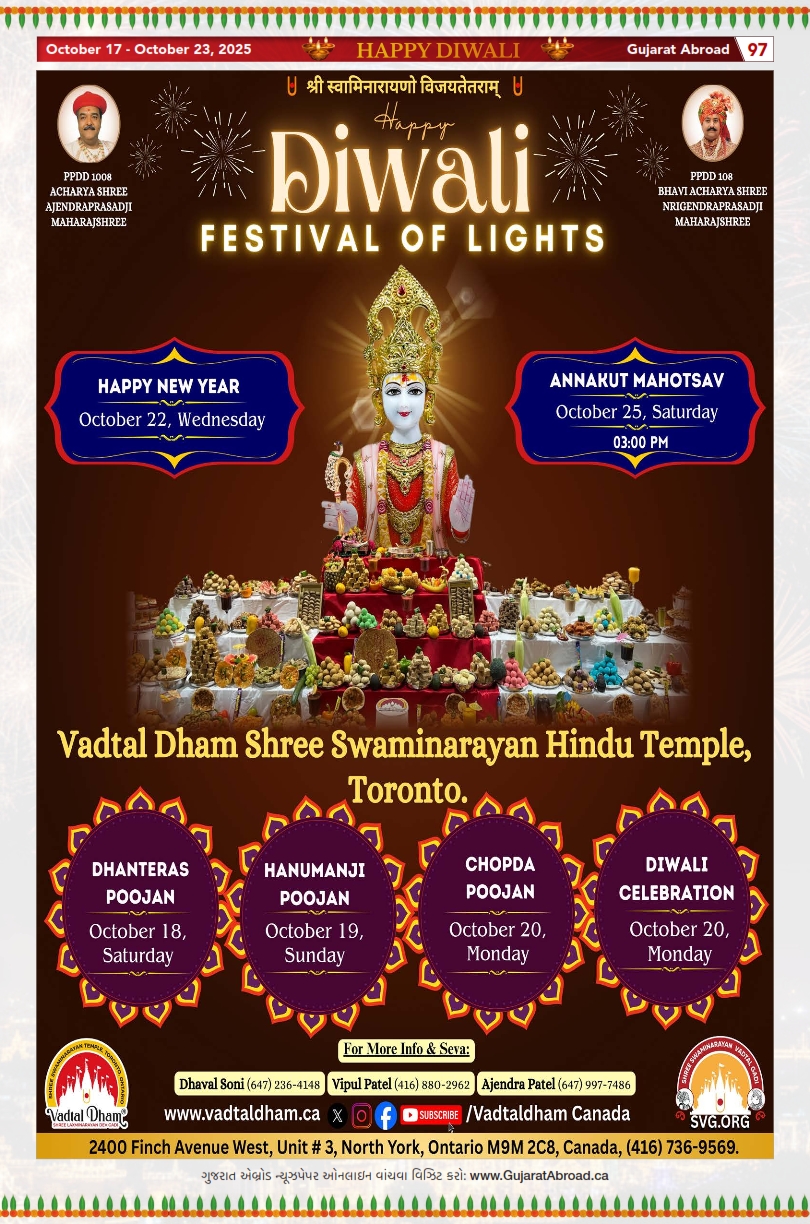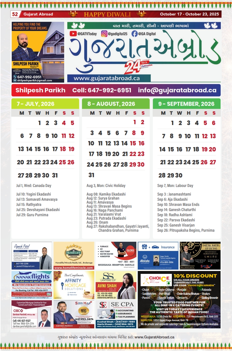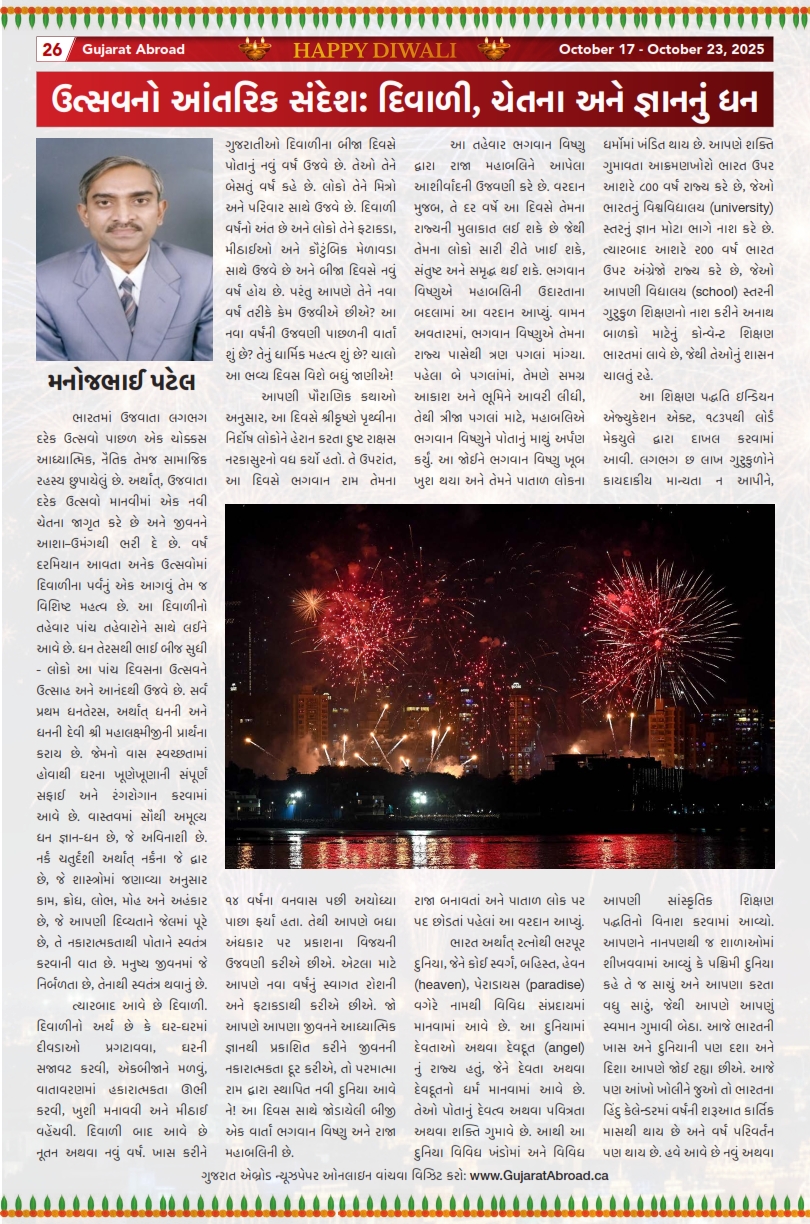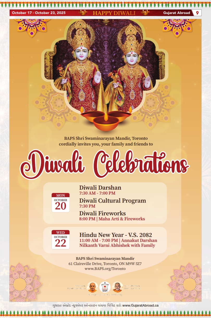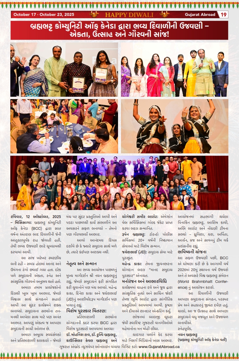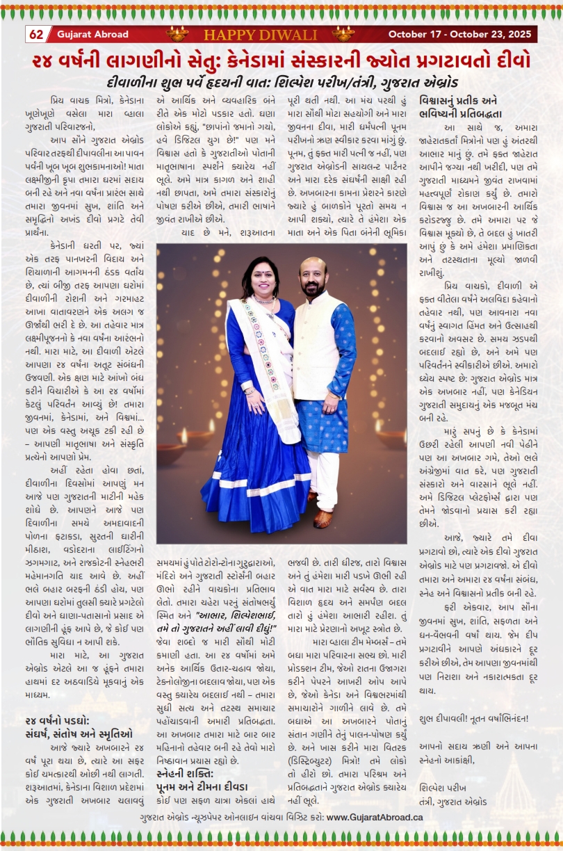 Gujarat Abroad is the largest circulated Gujarati Weekly Newspaper in the Greater Toronto & Surrounding Areas. Published from Brampton every Friday, Gujarat Abroad has a weekly print run of 15,000 copies, distributed free of cost through over 350 outlets throughout Toronto, Mississauga, Brampton, Markham & Oakville.