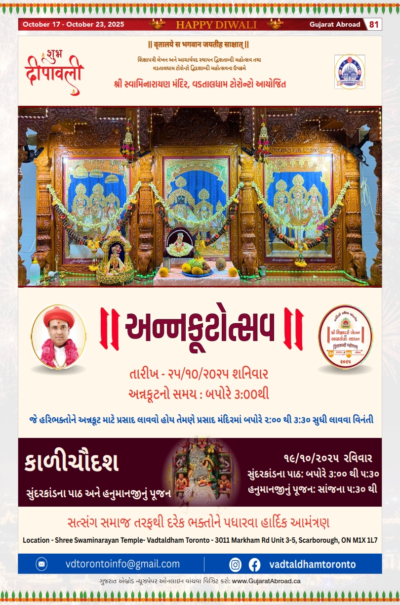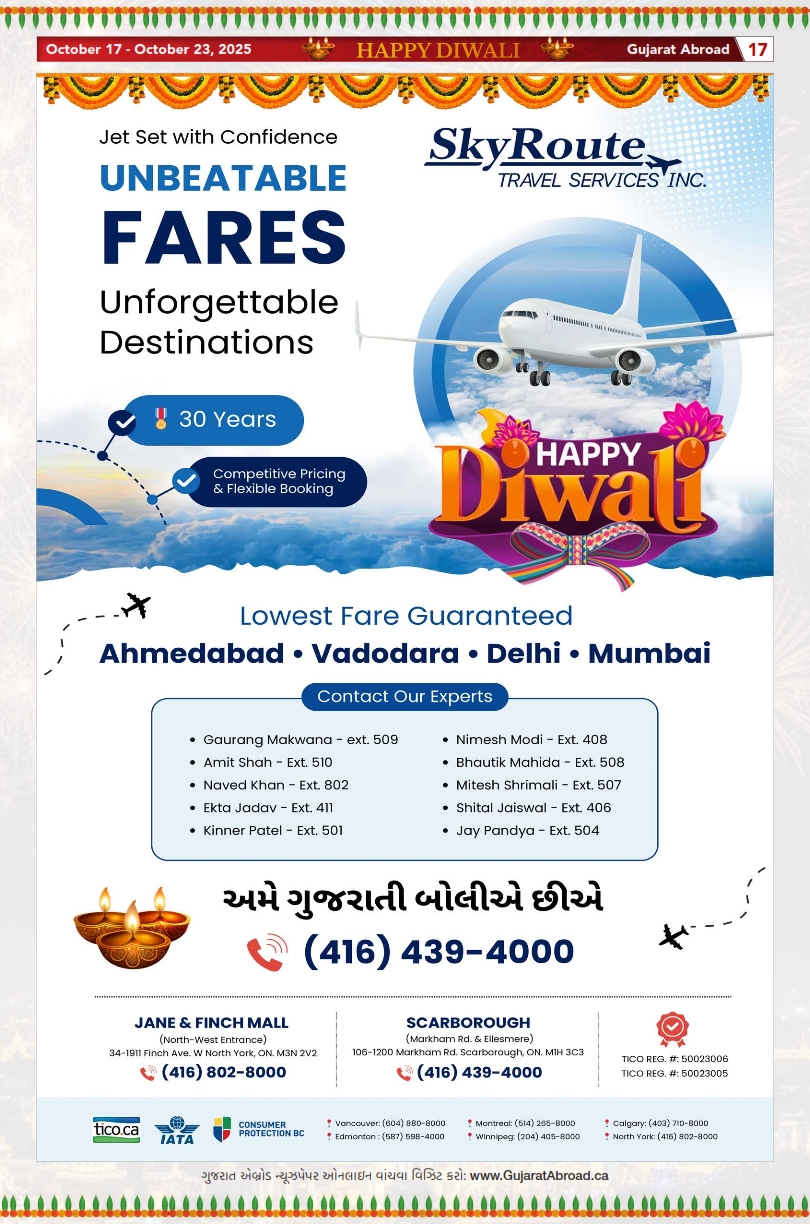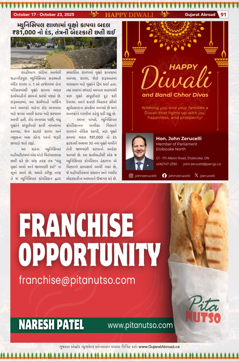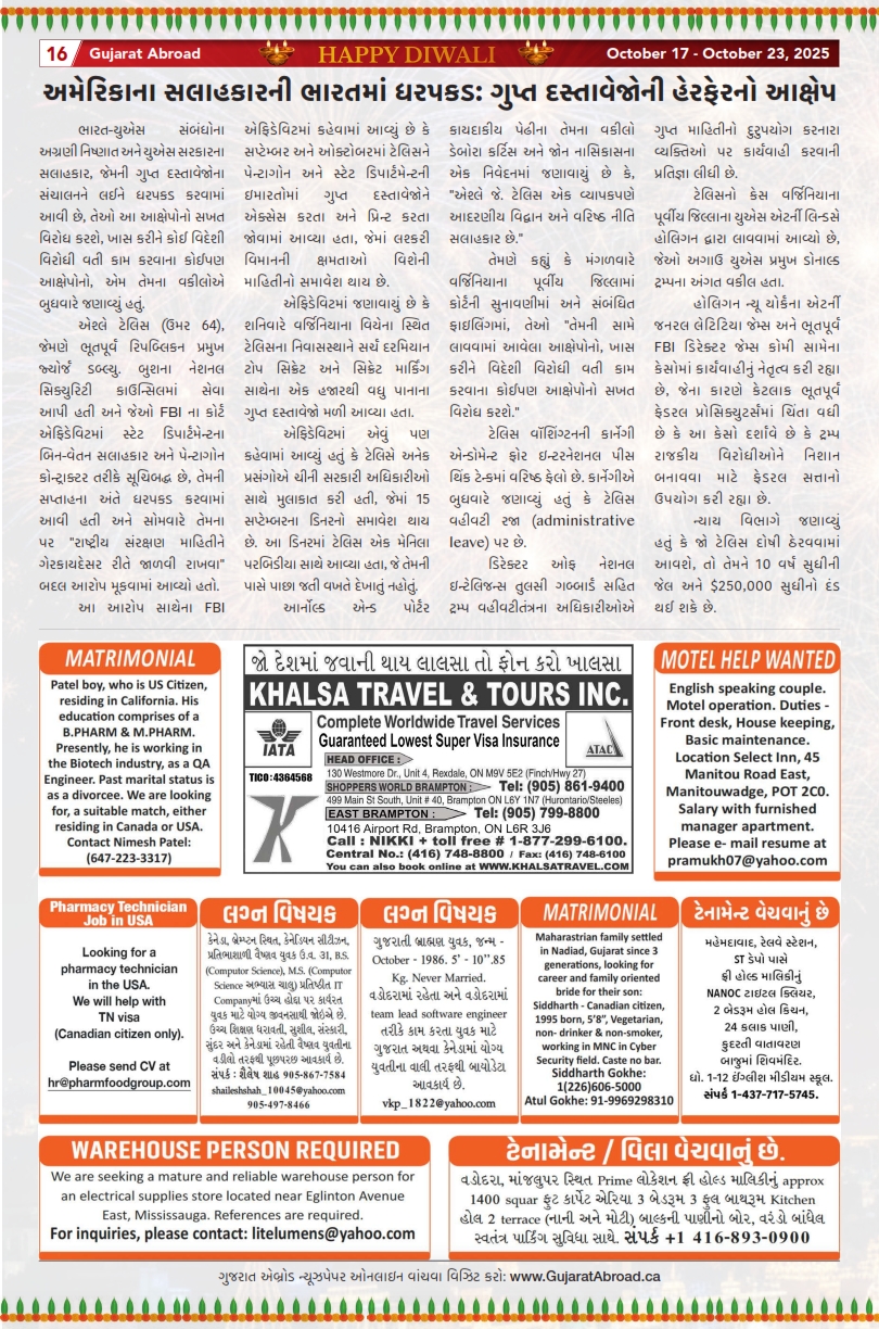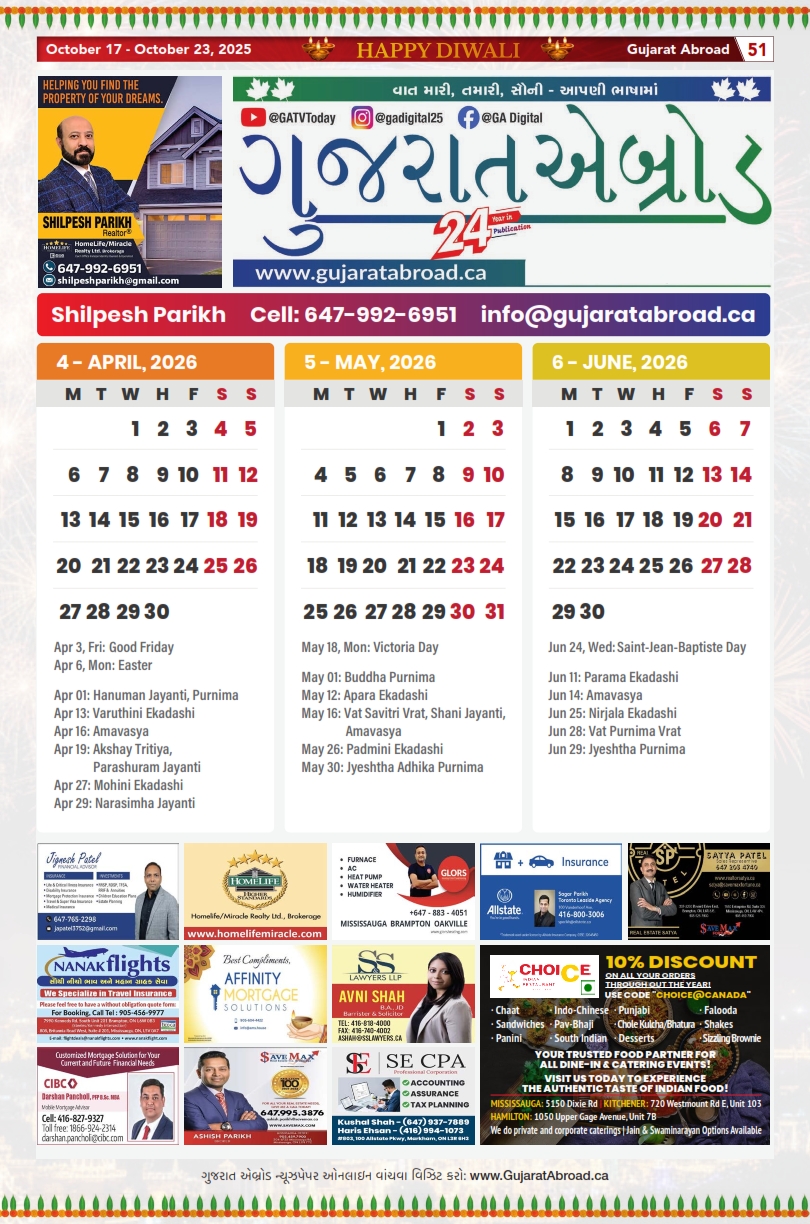 Gujarat Abroad is the largest circulated Gujarati Weekly Newspaper in the Greater Toronto & Surrounding Areas. Published from Brampton every Friday, Gujarat Abroad has a weekly print run of 15,000 copies, distributed free of cost through over 350 outlets throughout Toronto, Mississauga, Brampton, Markham & Oakville.