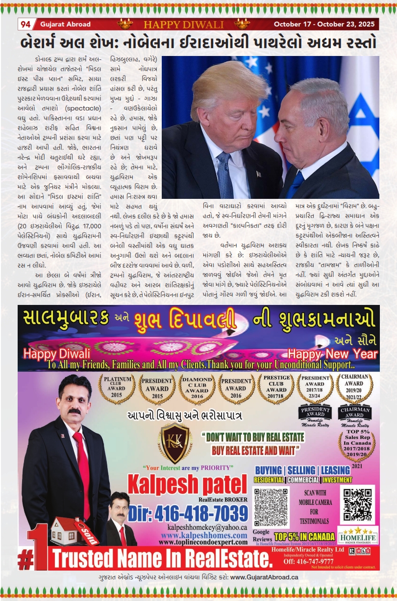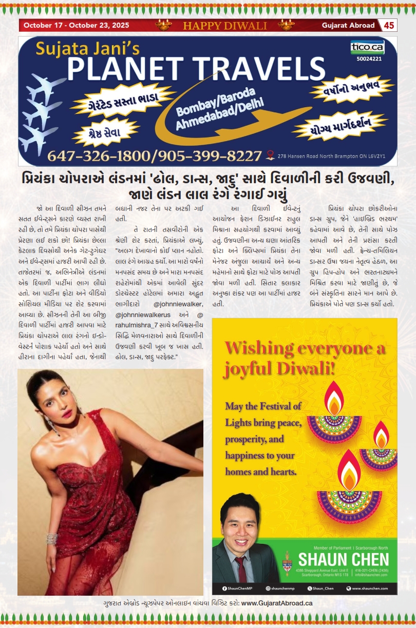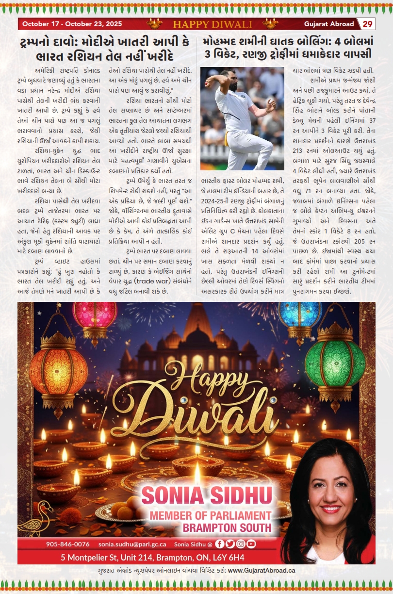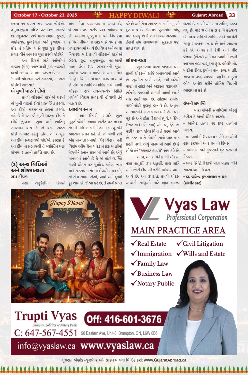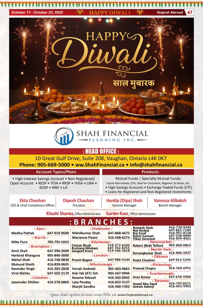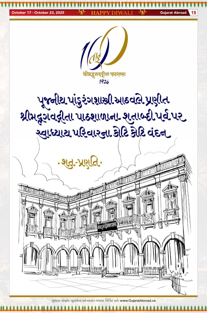 Gujarat Abroad is the largest circulated Gujarati Weekly Newspaper in the Greater Toronto & Surrounding Areas. Published from Brampton every Friday, Gujarat Abroad has a weekly print run of 15,000 copies, distributed free of cost through over 350 outlets throughout Toronto, Mississauga, Brampton, Markham & Oakville.