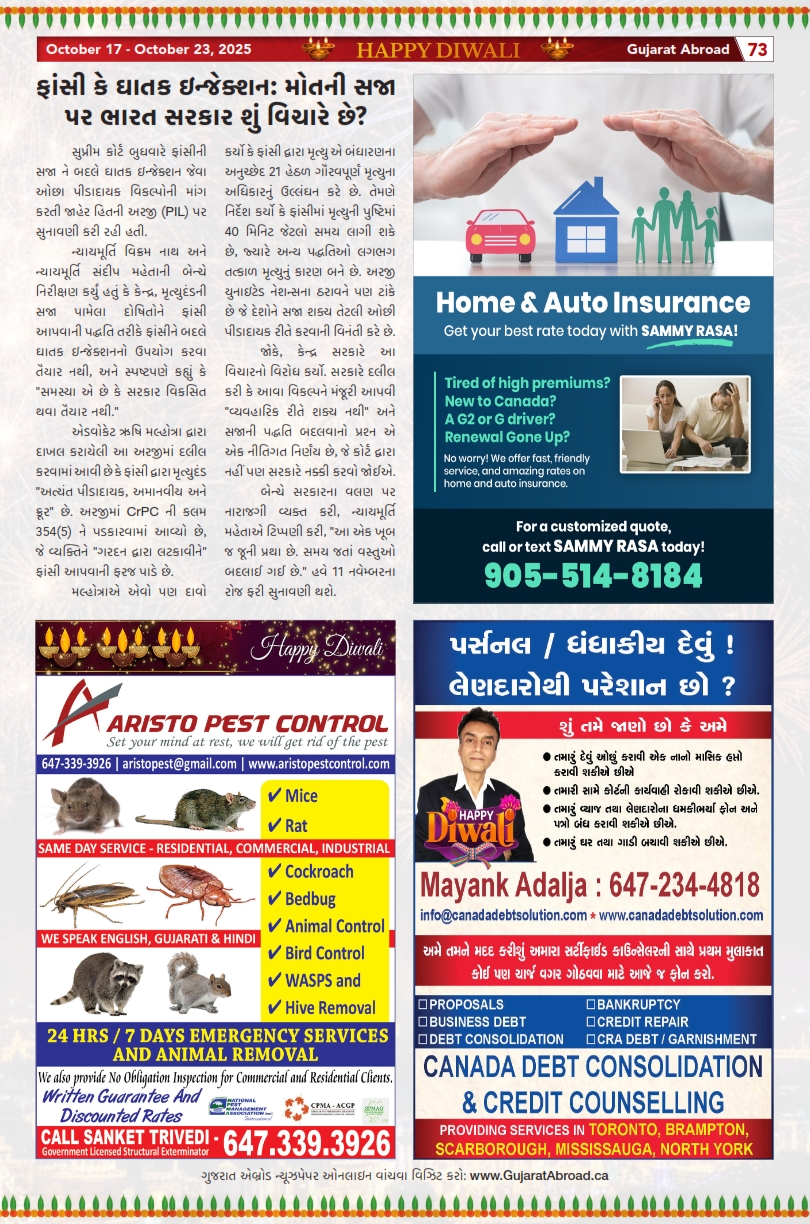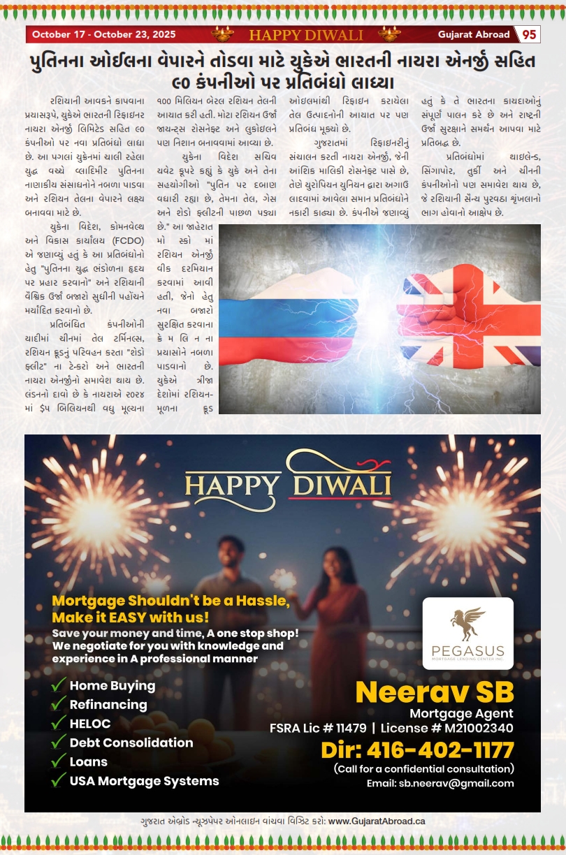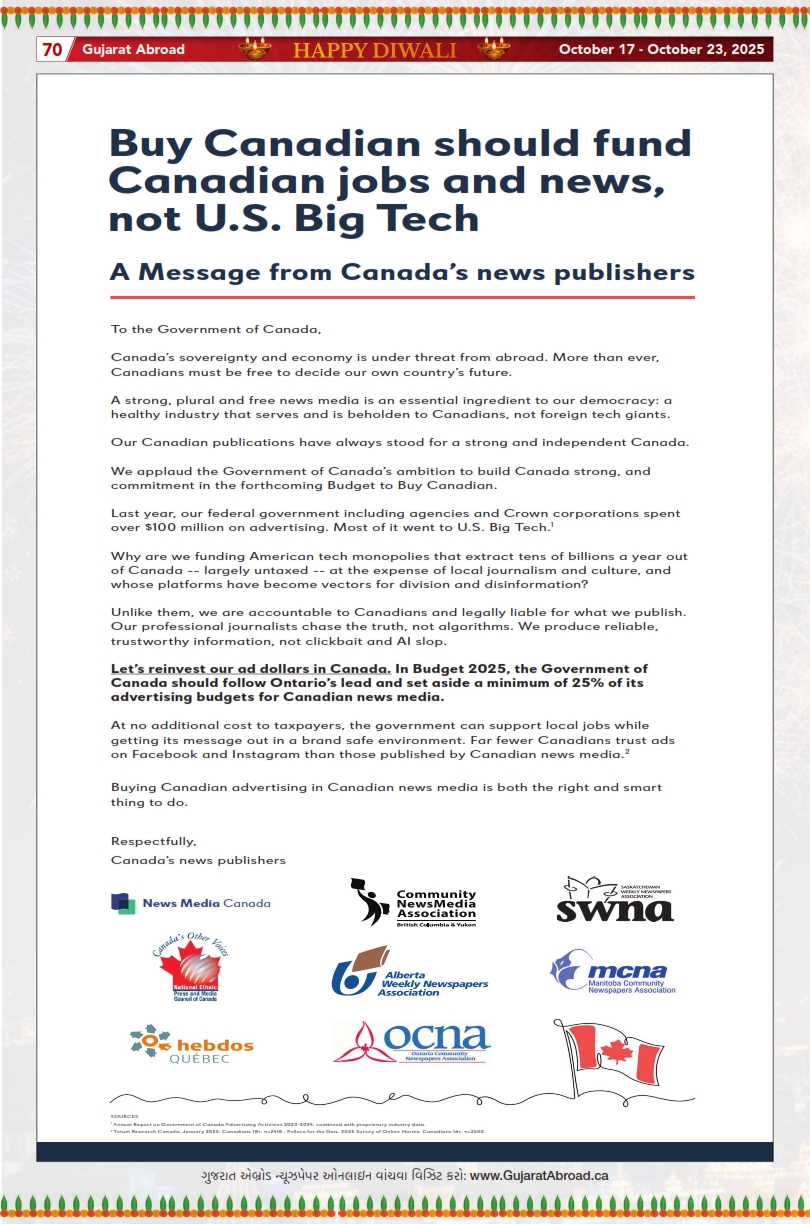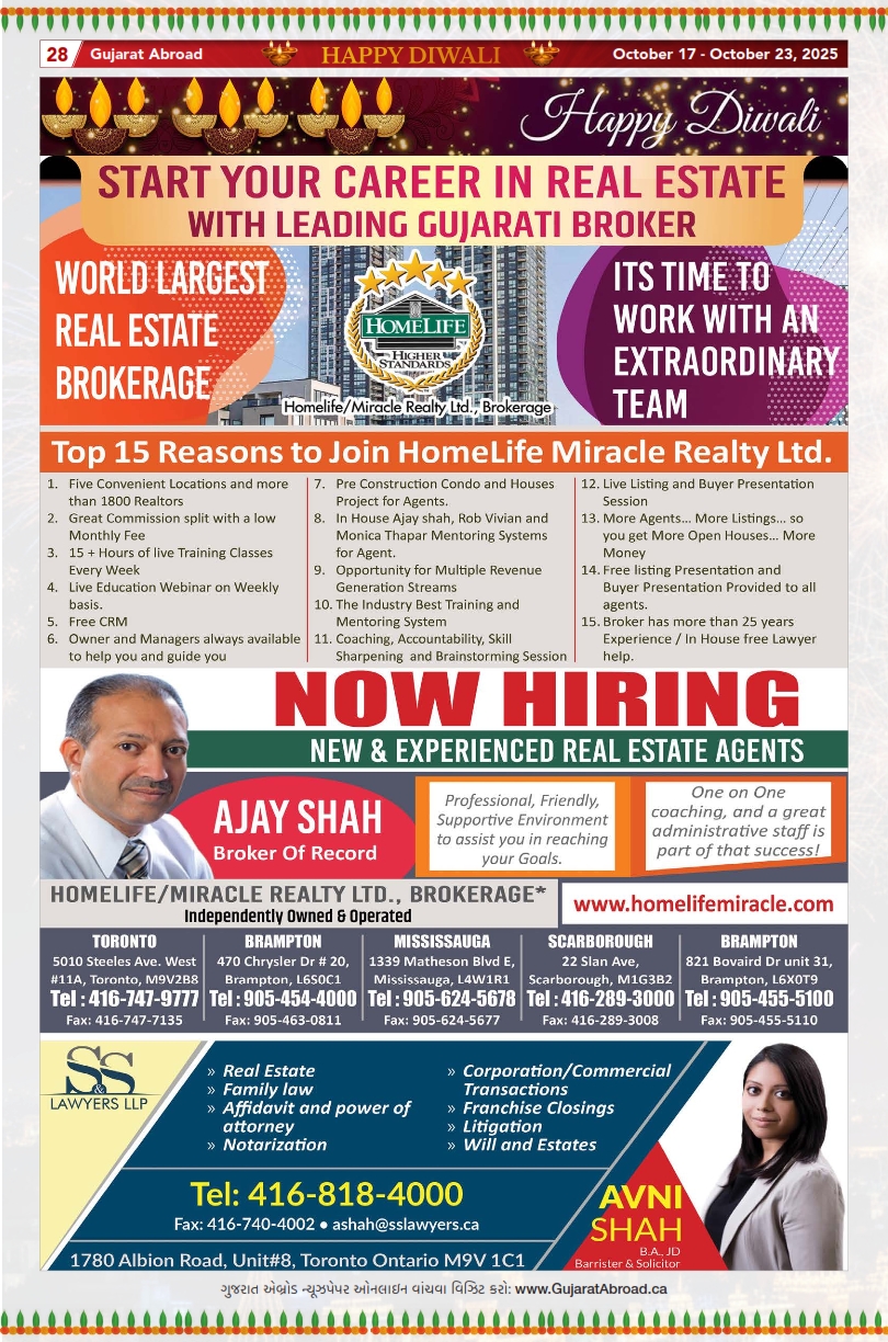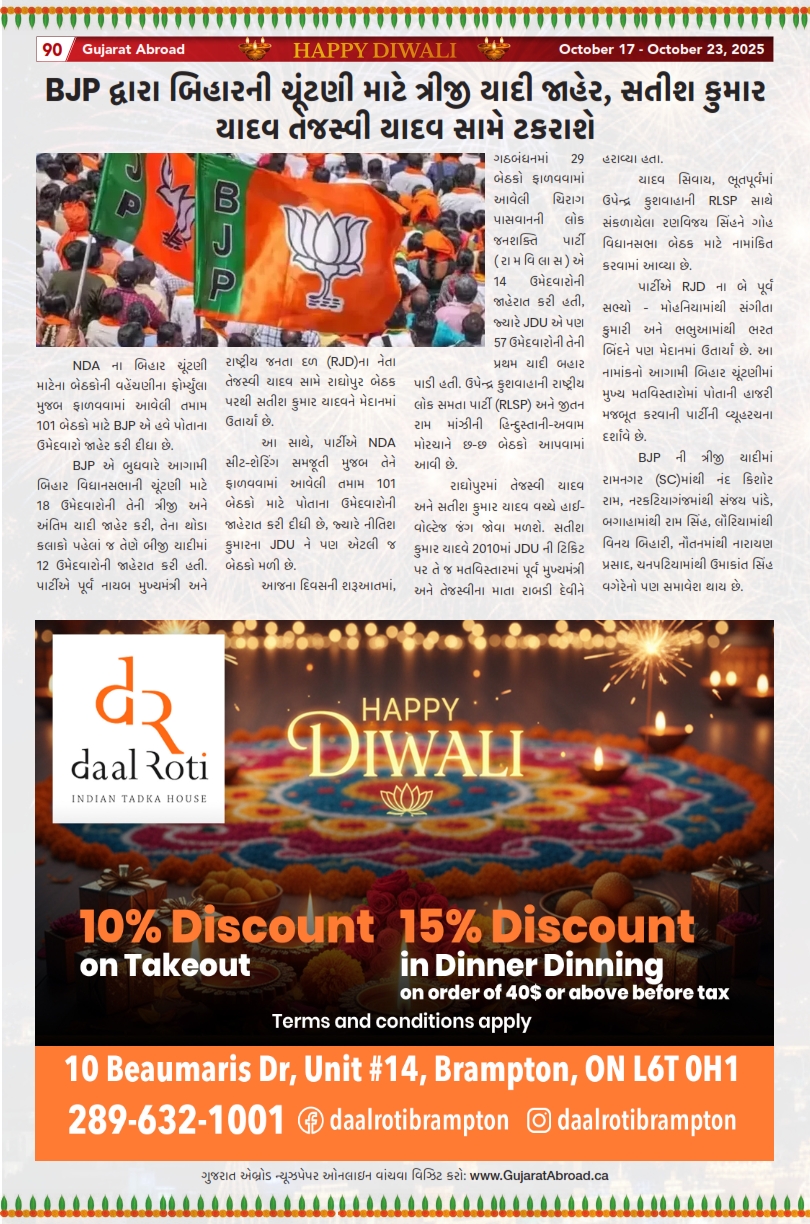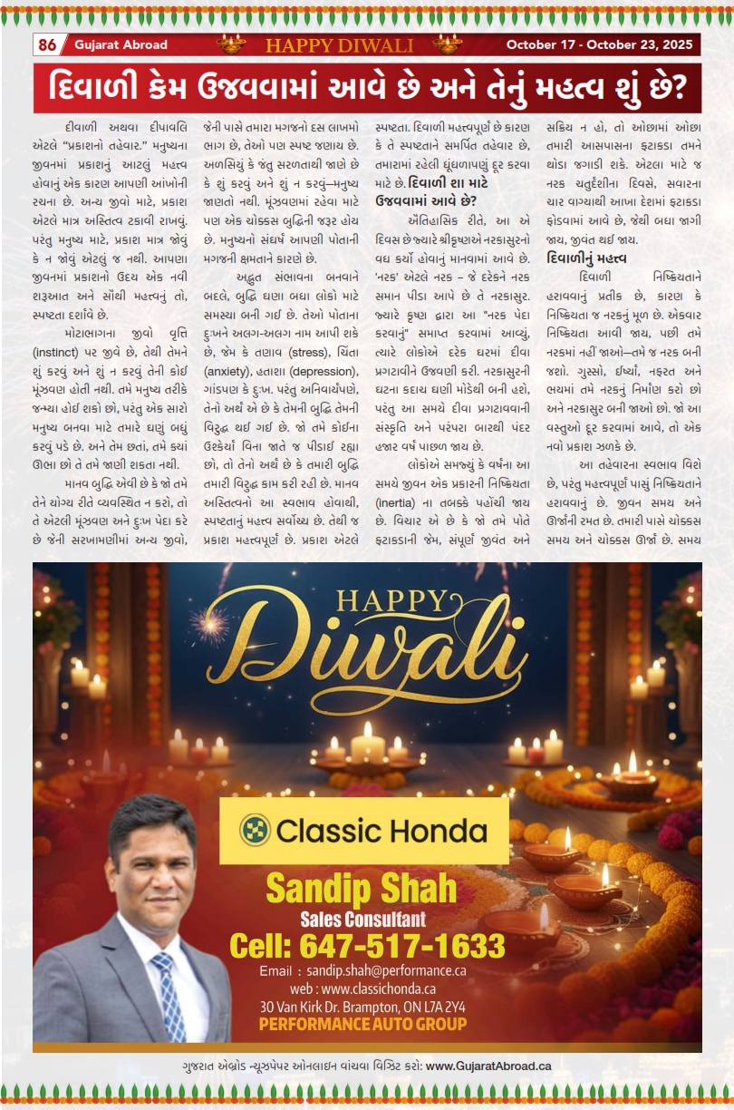 Gujarat Abroad is the largest circulated Gujarati Weekly Newspaper in the Greater Toronto & Surrounding Areas. Published from Brampton every Friday, Gujarat Abroad has a weekly print run of 15,000 copies, distributed free of cost through over 350 outlets throughout Toronto, Mississauga, Brampton, Markham & Oakville.