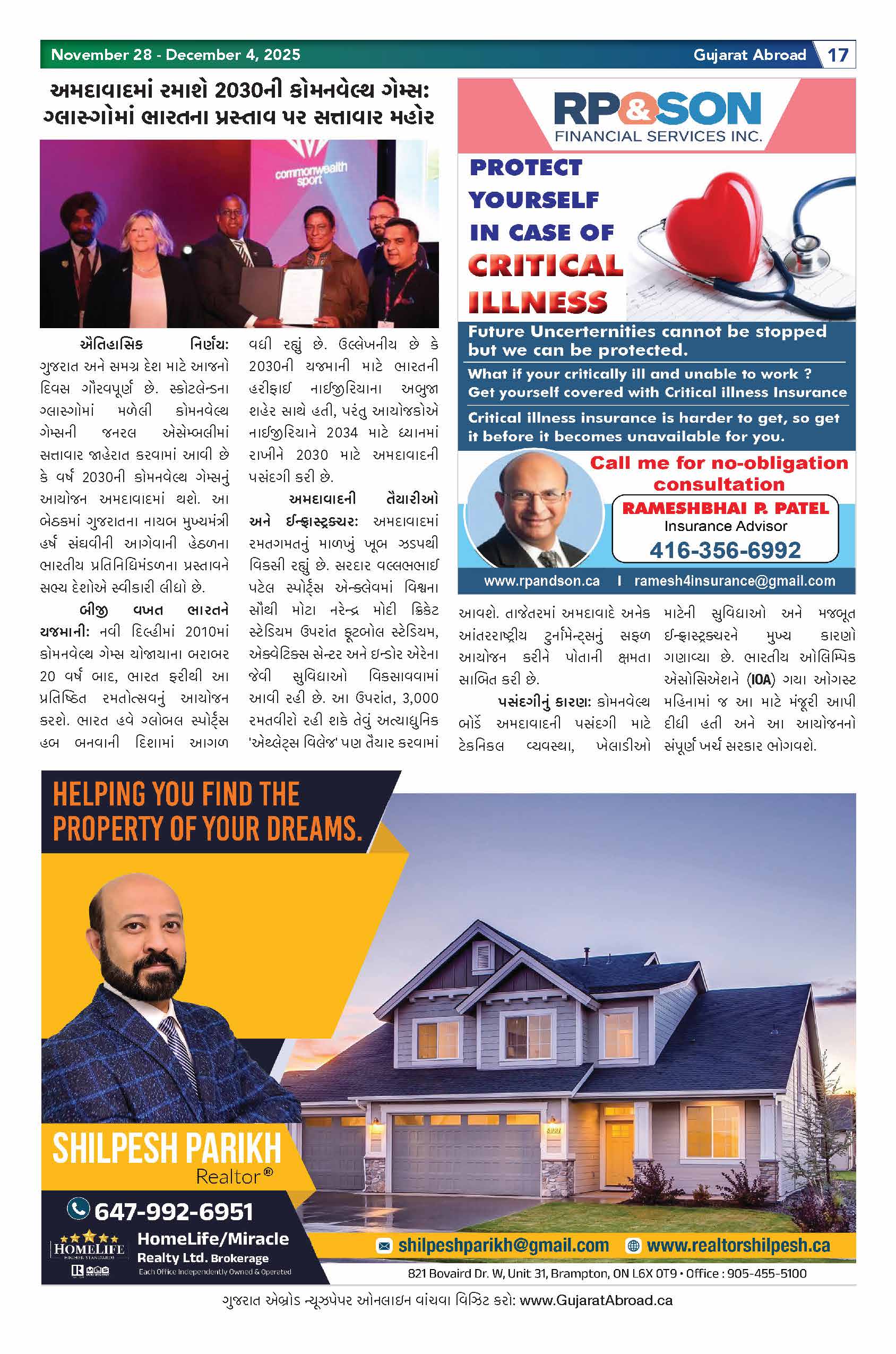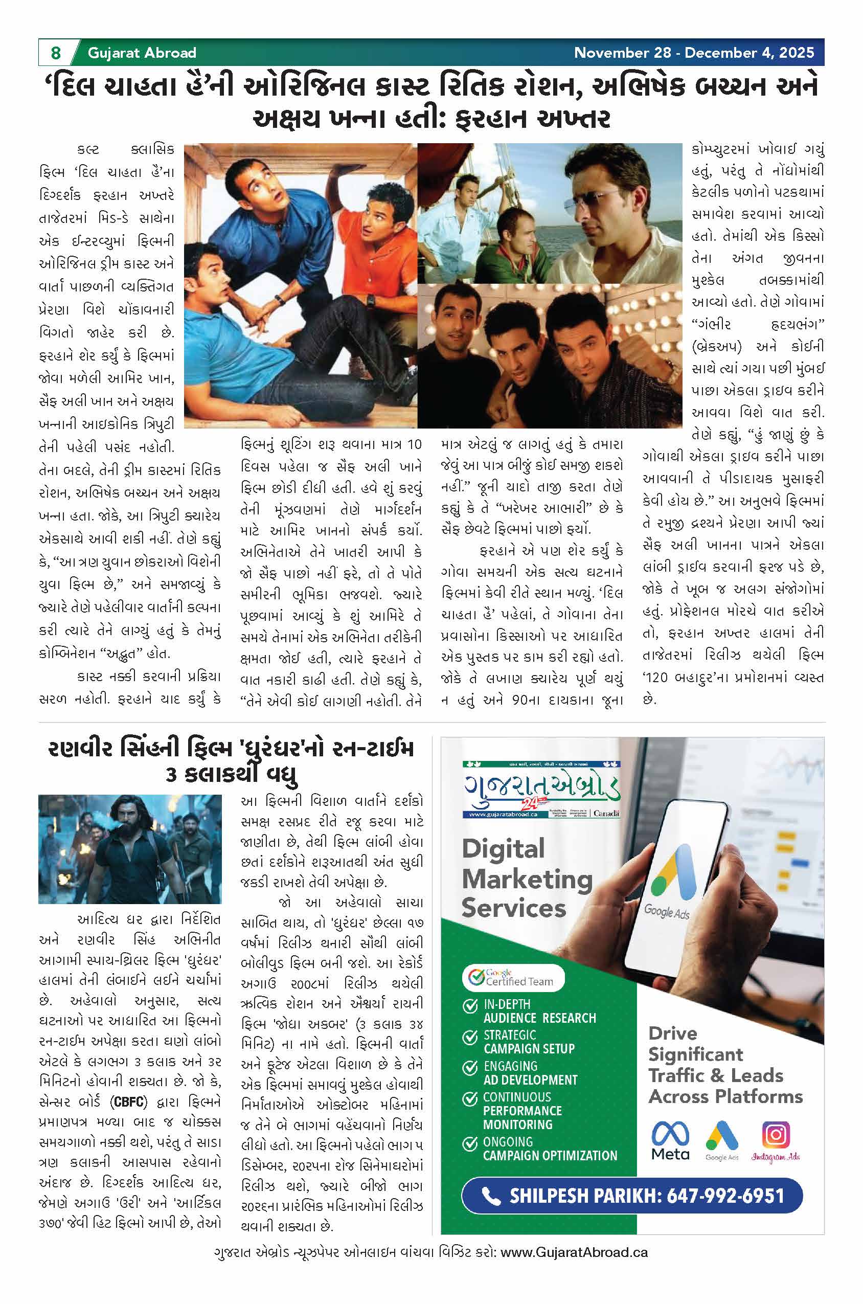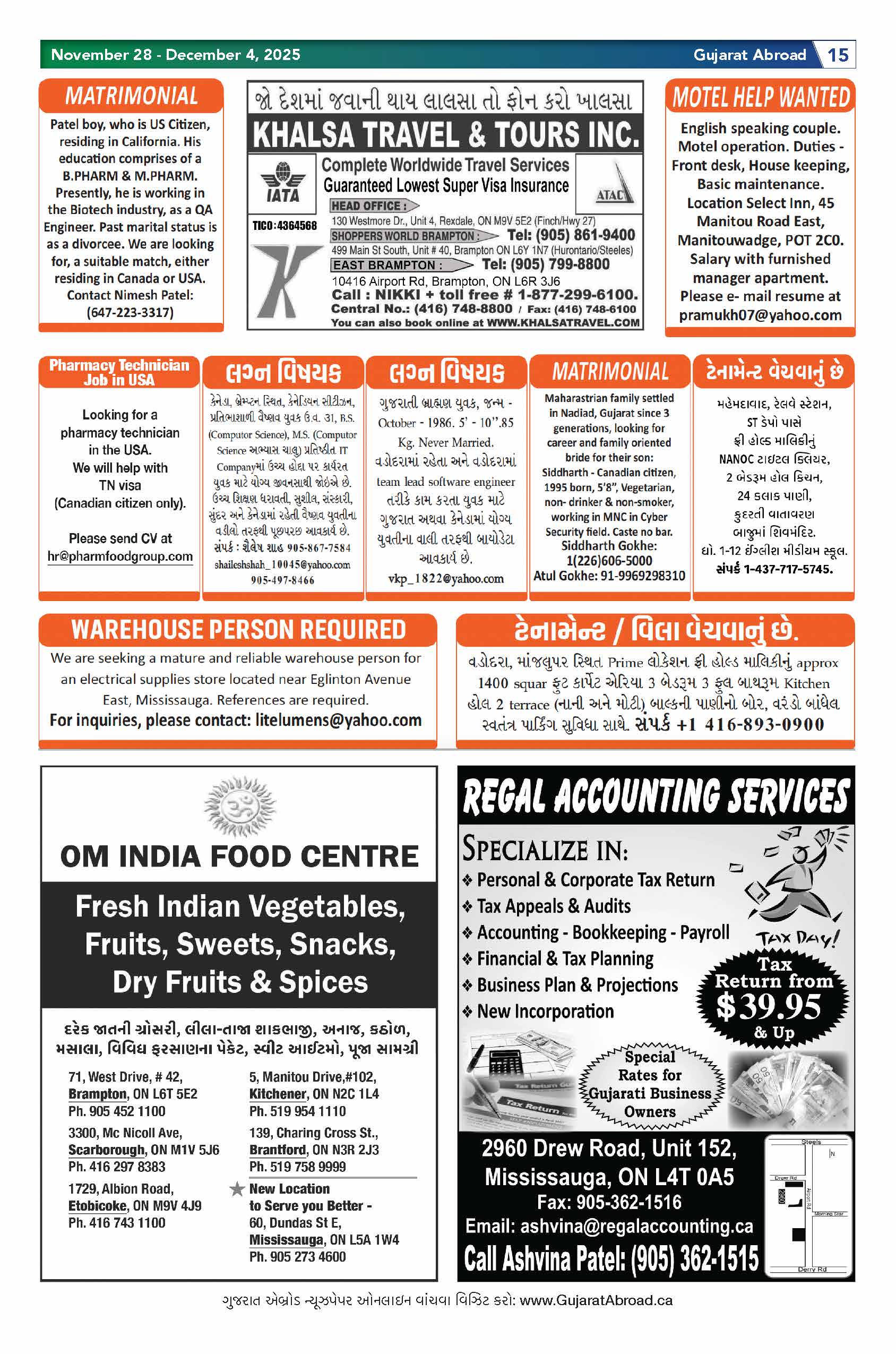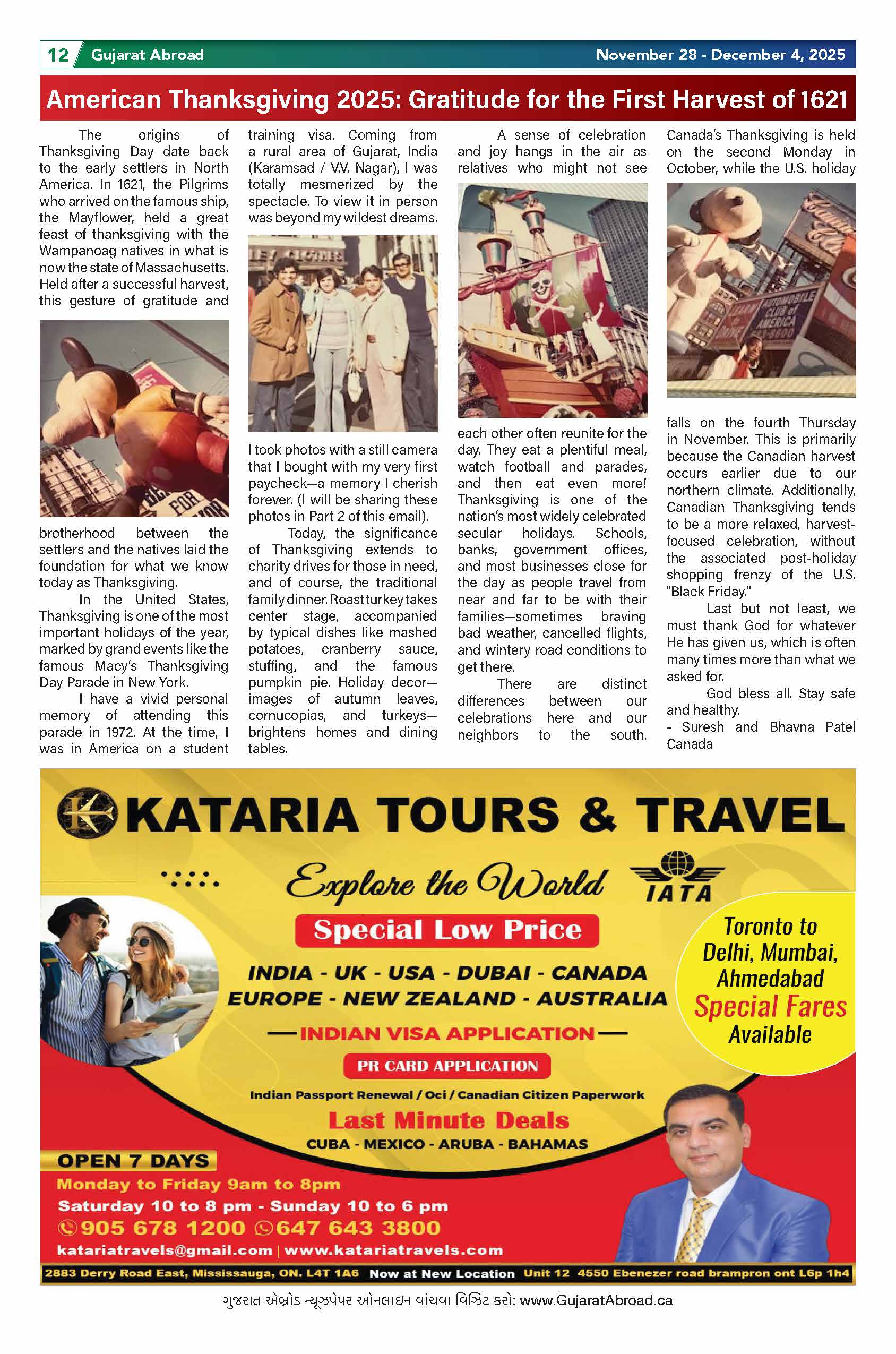 Gujarat Abroad is the largest circulated Gujarati Weekly Newspaper in the Greater Toronto & Surrounding Areas. Published from Brampton every Friday, Gujarat Abroad has a weekly print run of 15,000 copies, distributed free of cost through over 350 outlets throughout Toronto, Mississauga, Brampton, Markham & Oakville.