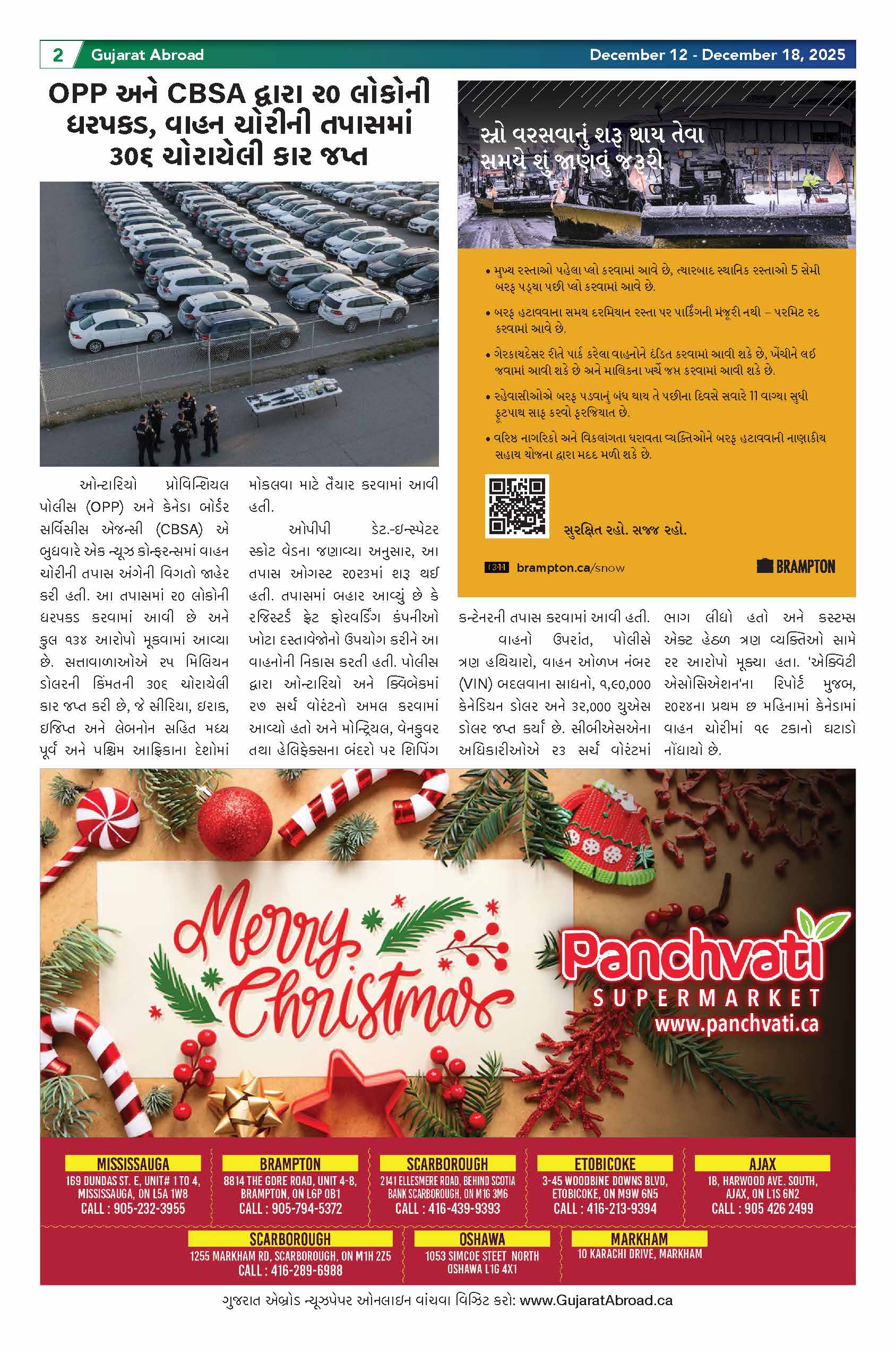 Gujarat Abroad is the largest circulated Gujarati Weekly Newspaper in the Greater Toronto & Surrounding Areas. Published from Brampton every Friday, Gujarat Abroad has a weekly print run of 15,000 copies, distributed free of cost through over 350 outlets throughout Toronto, Mississauga, Brampton, Markham & Oakville.